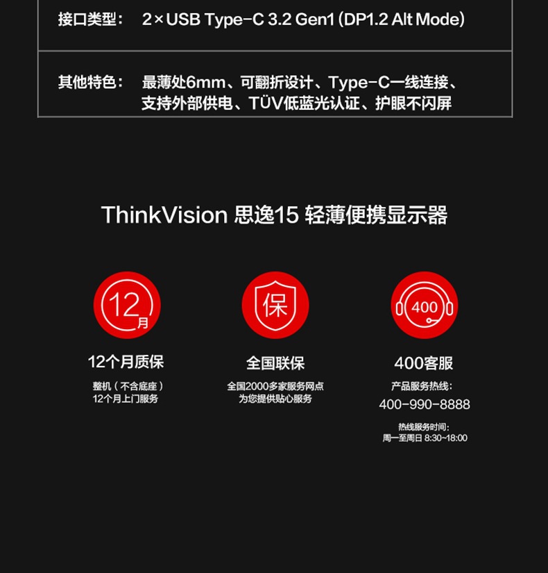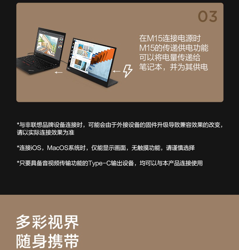 Lenovo (ThinkVision) M15 15.6 인치 듀얼 TypeC 로우 블루 올인원 휴대용 디스플레이스토어 가기