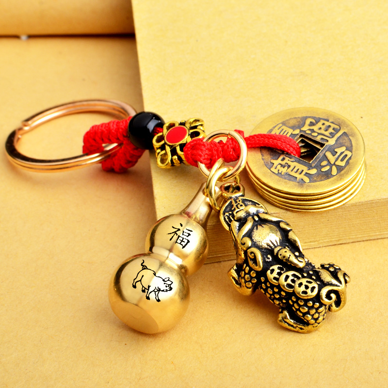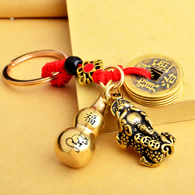황동 조롱박 12 조디악 키 체인 복고풍 용감한 펜던트 5 황제 돈을 보내 진사 작은 보석 제조 업체 도매스토어 가기