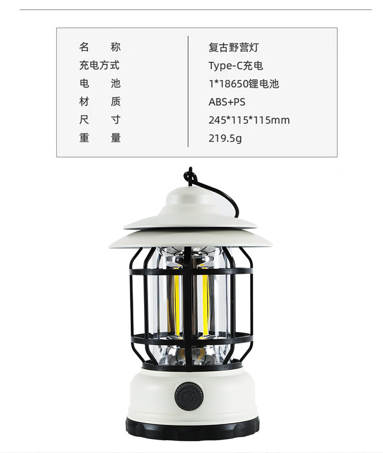 • USB 충전 케이블이있는 레트로 랜턴 [흰색]