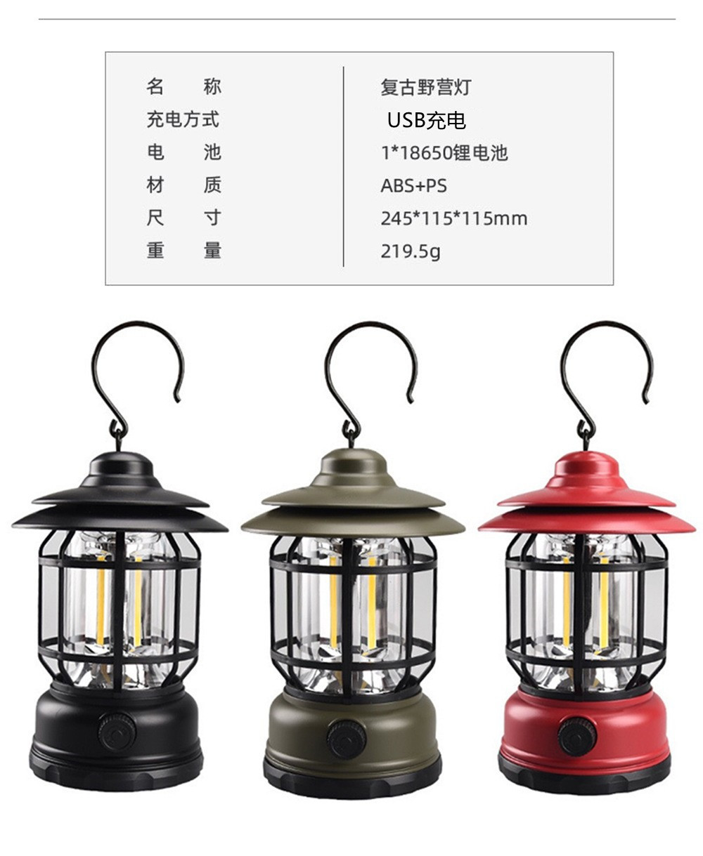 • USB 충전 케이블이있는 레트로 랜턴 [빨간색]