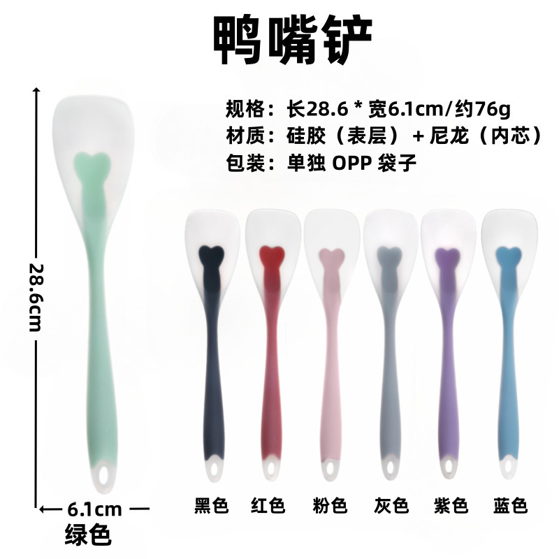 공장 공급 일체형 실리콘 플랫 헤드 샐러드 삽 베이킹 도구 믹싱 삽 샐러드 스푼 덕빌 삽스토어 가기