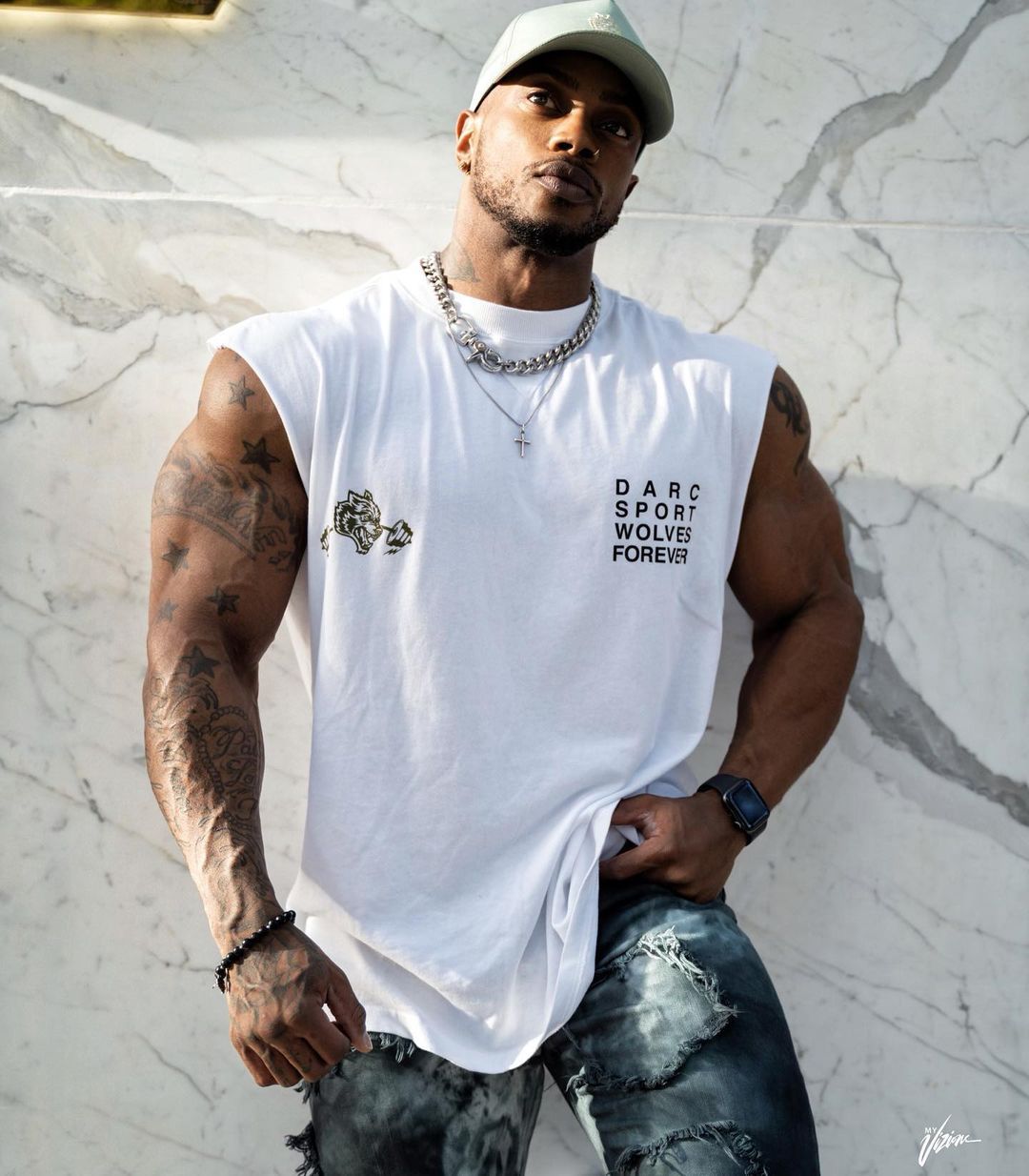 유럽과 미국 늑대 머리 피트니스 조끼 남자의 민소매 훈련 롤 아이언 탑 무거운 티셔츠 느슨한 통기성 플러스 사이즈 러닝 의류스토어 가기