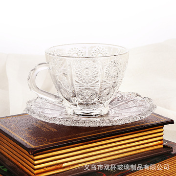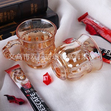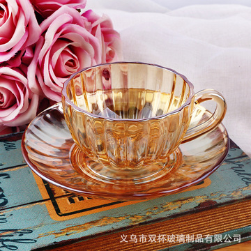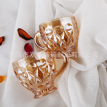厂家直供玉晶电镀加厚耐热带把玻璃杯泡花茶功夫小茶杯琥珀色茗杯   ins复古宫廷风太阳花咖啡杯碟套装家用水杯下午茶花茶杯玻璃杯碟   电镀威士忌酒杯家用透明六角玻璃杯菱形几何啤酒杯钻石金边果汁杯