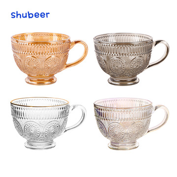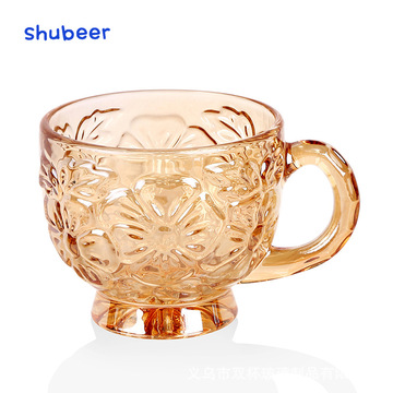 复古刻花琥珀色咖啡杯家居水杯奶茶杯法式浮雕花纹加厚耐热玻璃杯   北欧复古玻璃杯鸢尾花炫彩百合杯浮雕加厚果汁牛奶杯家用茶水杯   宫廷复古浮雕太阳花玻璃杯早餐杯花茶杯咖啡杯大容量燕麦碗甜品碗