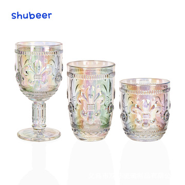 厂家直销复古高脚香槟杯电镀琥珀色浮雕果汁杯加厚法式红酒刻花杯   日式ins复古雪糕杯锤纹甜品杯太阳花冰淇淋碗布丁酸奶少女小杯子   ins简约日式扭曲玻璃杯方形洛克杯威士忌杯描金复古咖啡杯牛奶杯