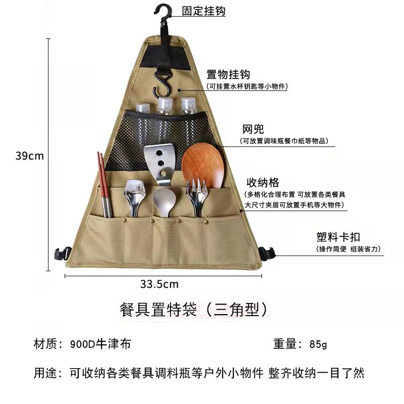 아마존 캠핑 수납 가방, 식기 천 가방, 야외 바베큐 보관 걸이 가방, 접이식 삼각형 걸이식 조리기구 휴대용스토어 가기