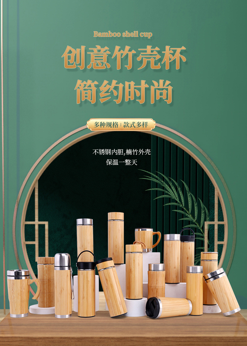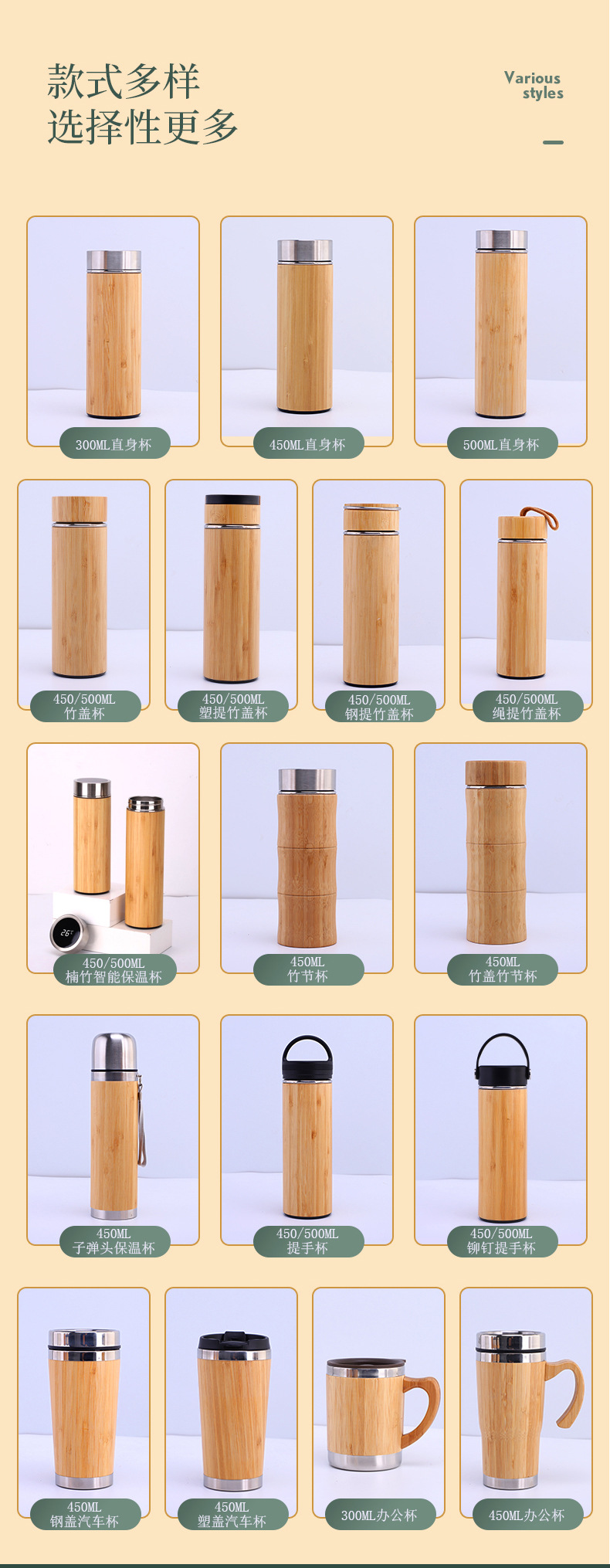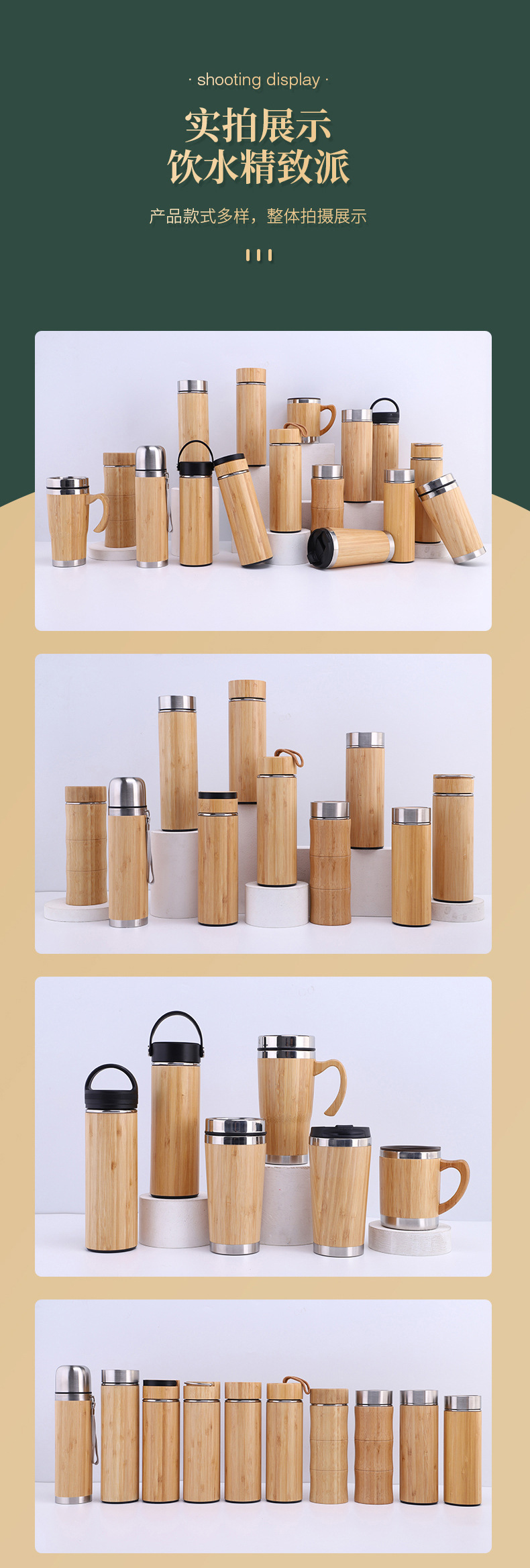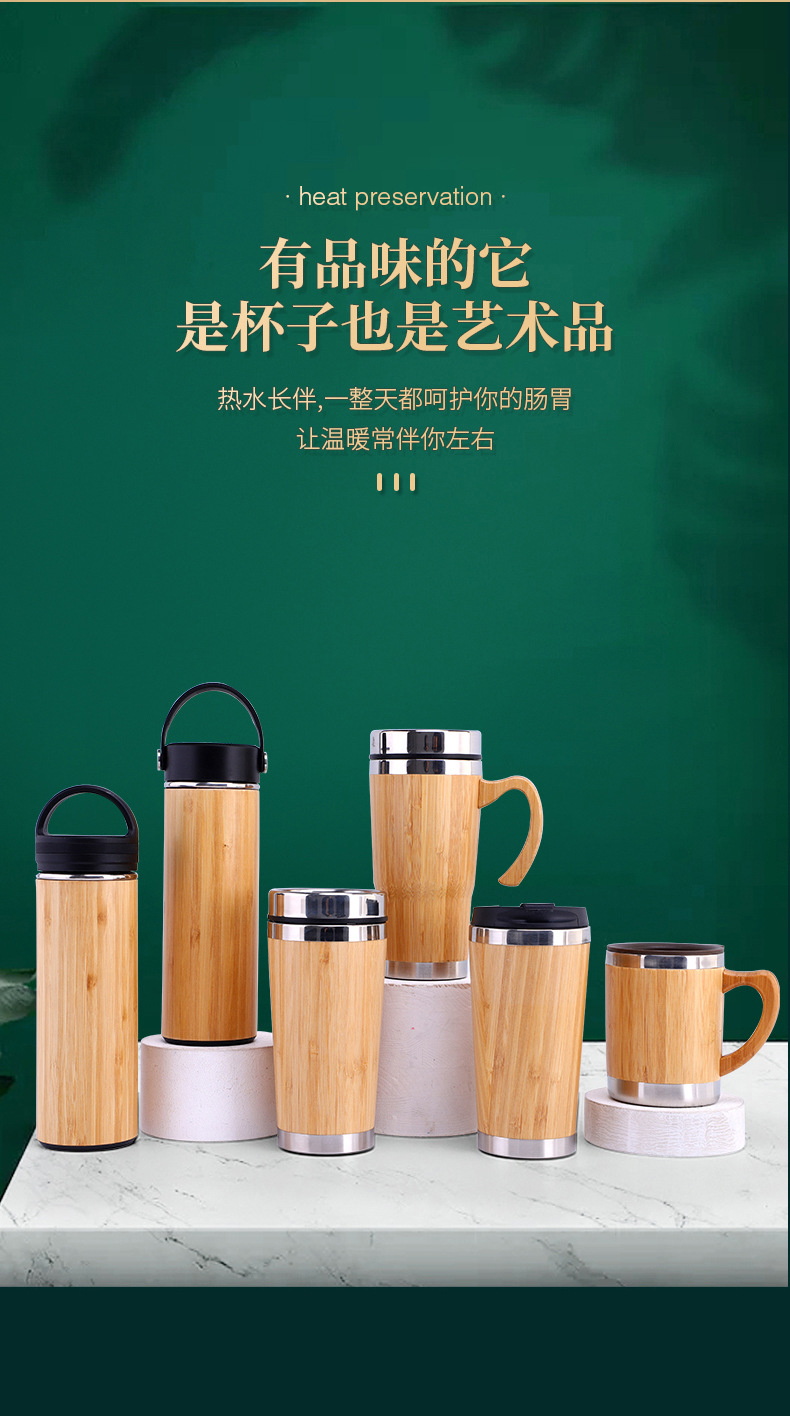 국경을 넘는 새로운 이중 스테인레스 스틸 스마트 자동차 장착 대나무 컵, 대나무 직선 컵, 보온 물컵, 창의적인 대나무 컵스토어 가기