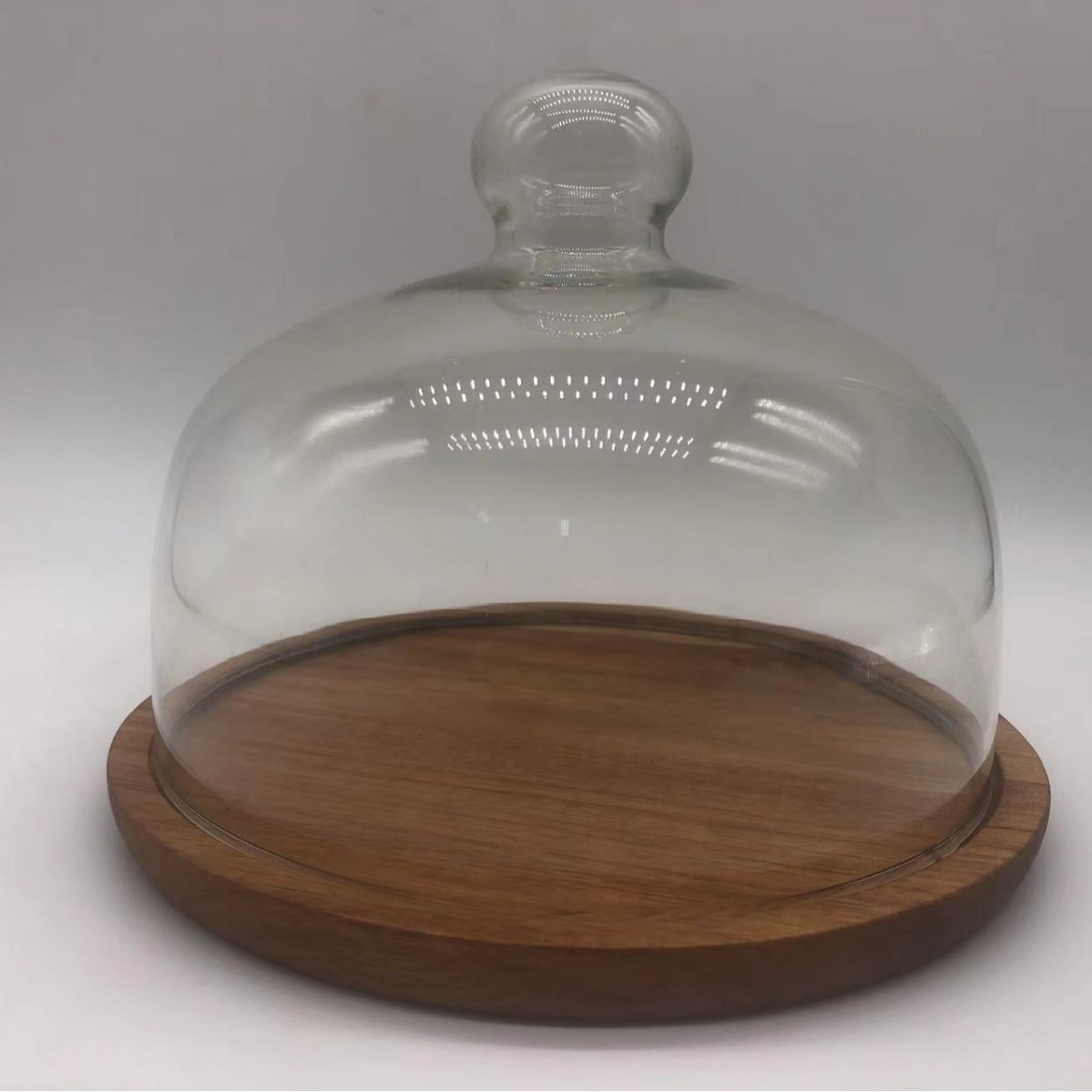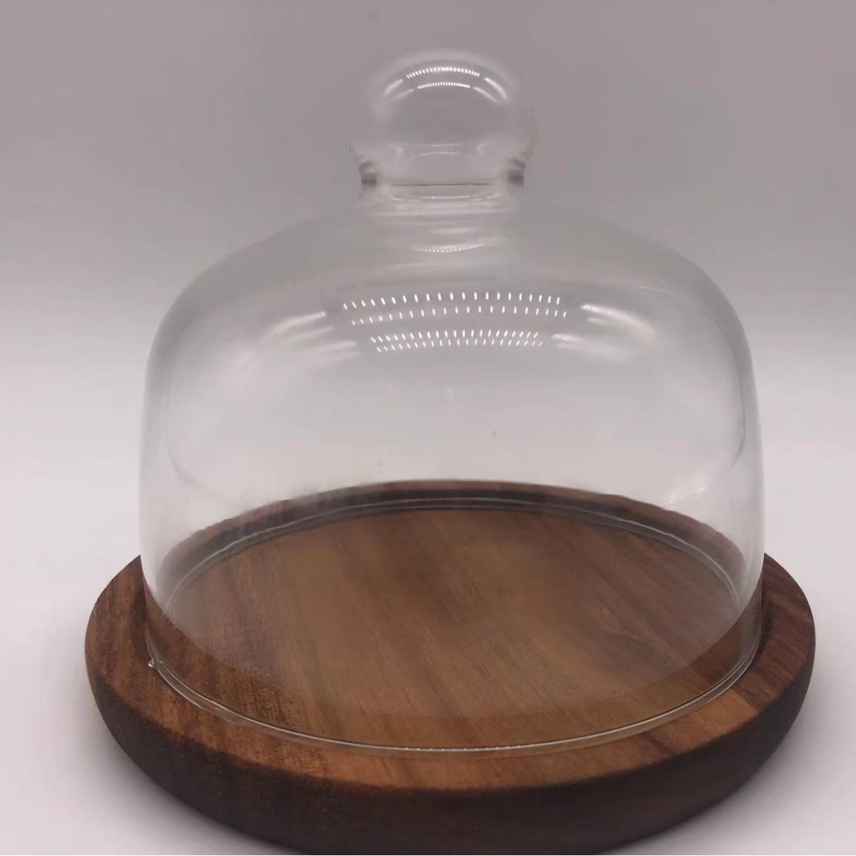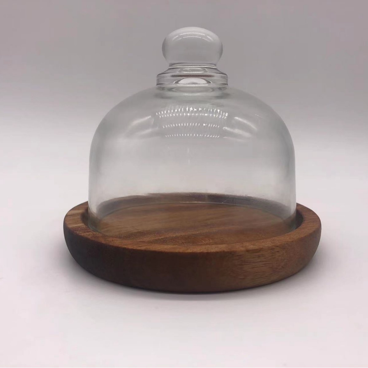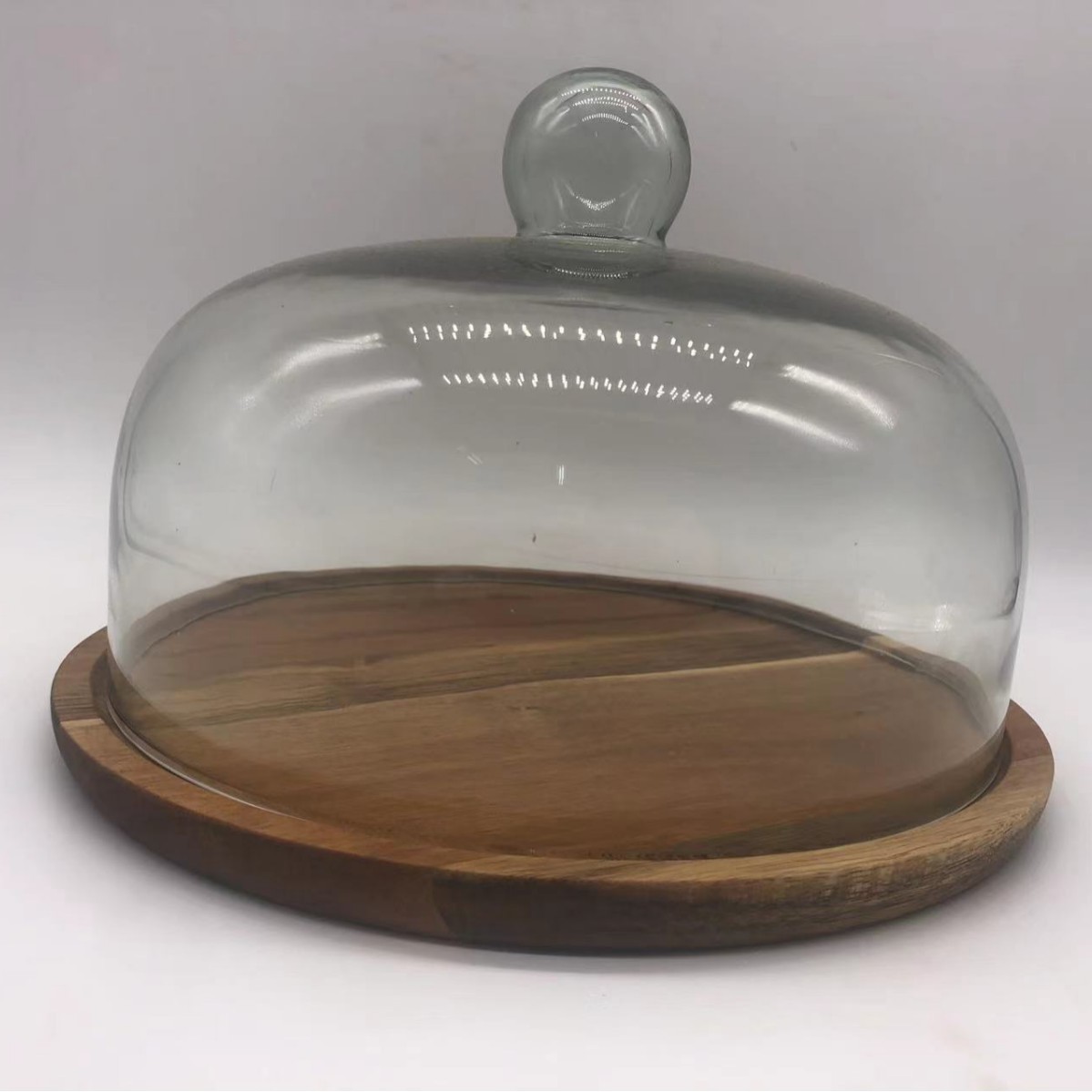 단단한 나무 호두 아카시아 나무 케이크 플레이트 유리 커버 과일 플레이트와 나무 트레이 유리 스낵 트레이