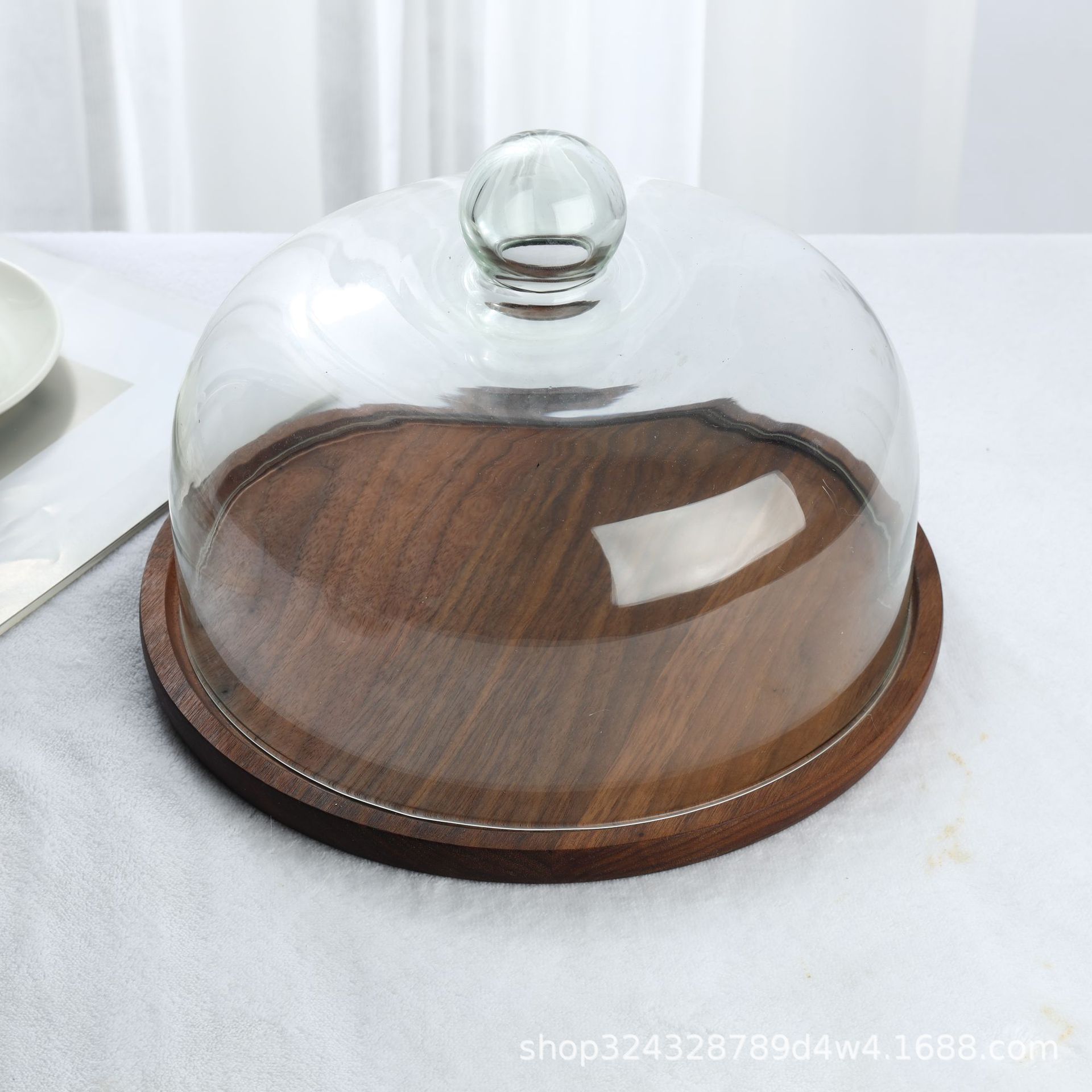 단단한 나무 호두 아카시아 나무 케이크 플레이트 유리 커버 과일 플레이트와 나무 트레이 유리 스낵 트레이스토어 가기
