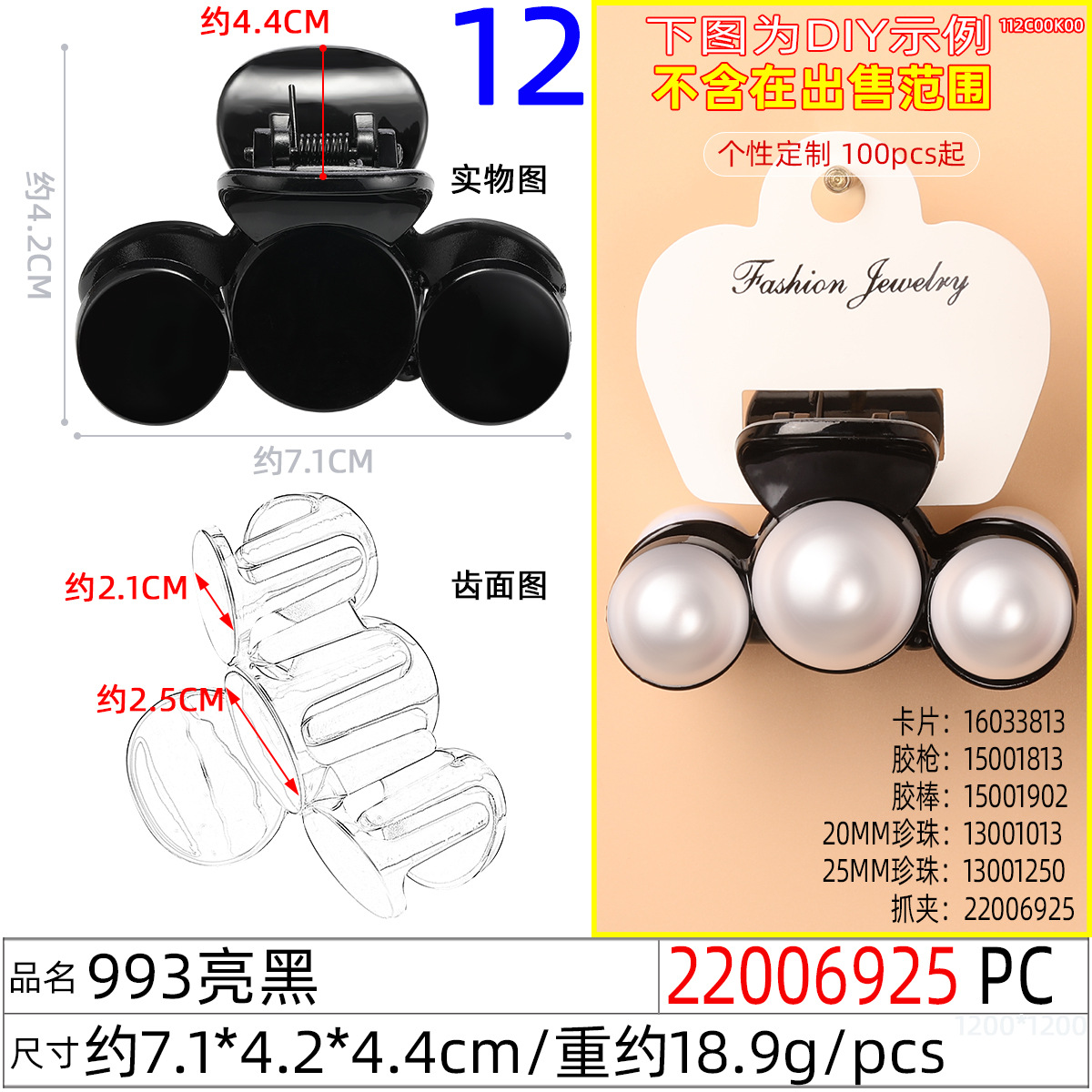 문클(PC 소재) 블랙 스몰 사이즈 헤어 집게핀 여성용 체리 펄 문어 집게핀 반제품 사각 집게핀 DIY 헤어 액세서리