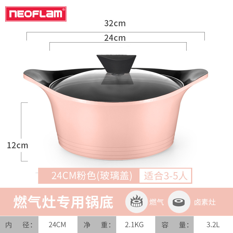 • 24cm 핑크 수프 냄비 + 뚜껑