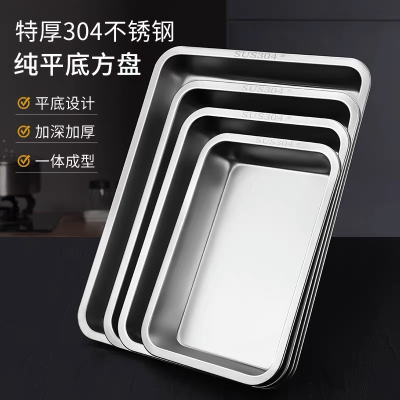 304 식품 등급 스테인레스 스틸 사각 접시 주방 평평한 바닥 대용량 트레이 캔틴 레스토랑 요리 준비 스테인레스 스틸 접시스토어 가기