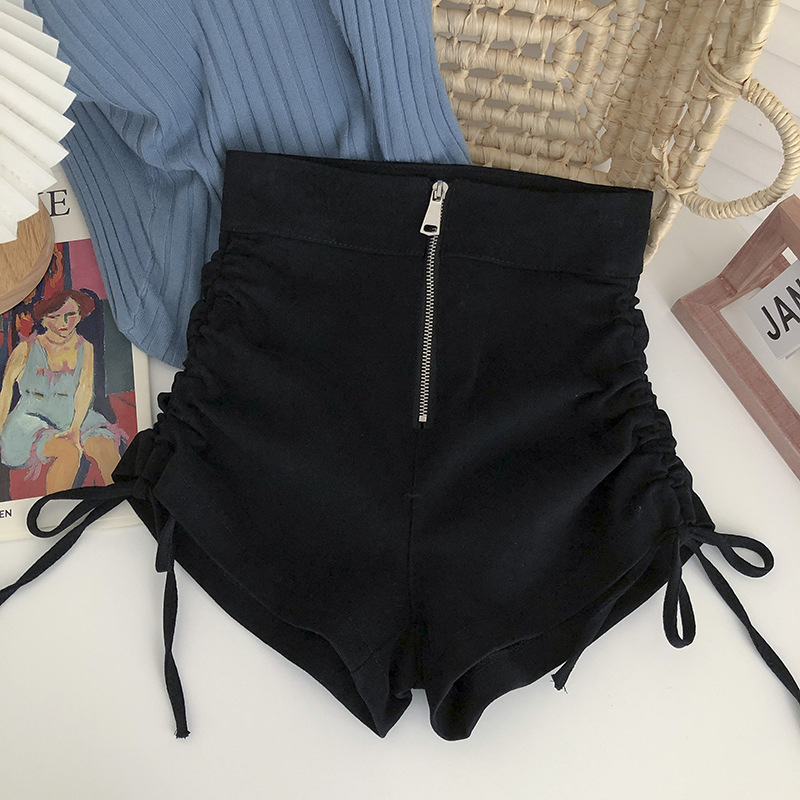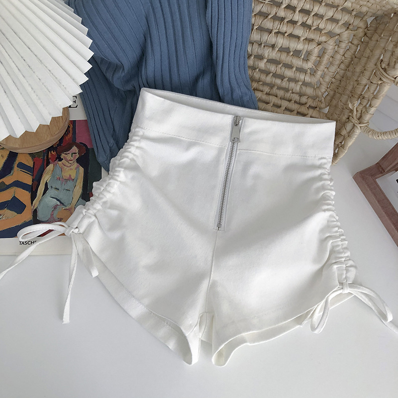 여자 여름 반바지 2025 탄성 높은 허리 Drawstring 반바지 다목적 솔리드 컬러 스키니 캐주얼 바지 드롭 배송