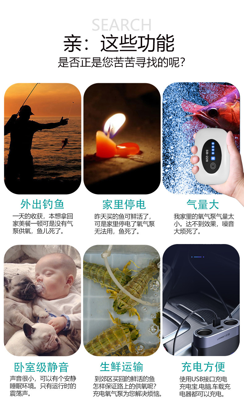 물고기 산소 펌프 통풍기 리튬 배터리 충전식 낚시 이중 목적 usb 야외 소형 휴대용 자동 공기 펌프스토어 가기