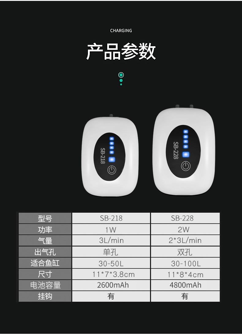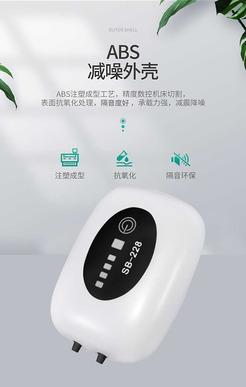 SB-228(428g/个包装尺寸12.9*12.6*7.2cm) 30个/箱, 配二条气管,二气石,一条电源线
