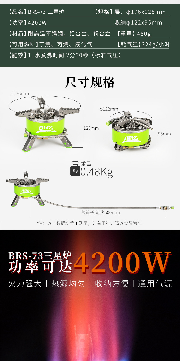형제 Jie Deng BRS-73 3 헤드 스토브 필드 가스 스토브 캠핑 스토브 휴대용 가스 미니 치열한 스토브