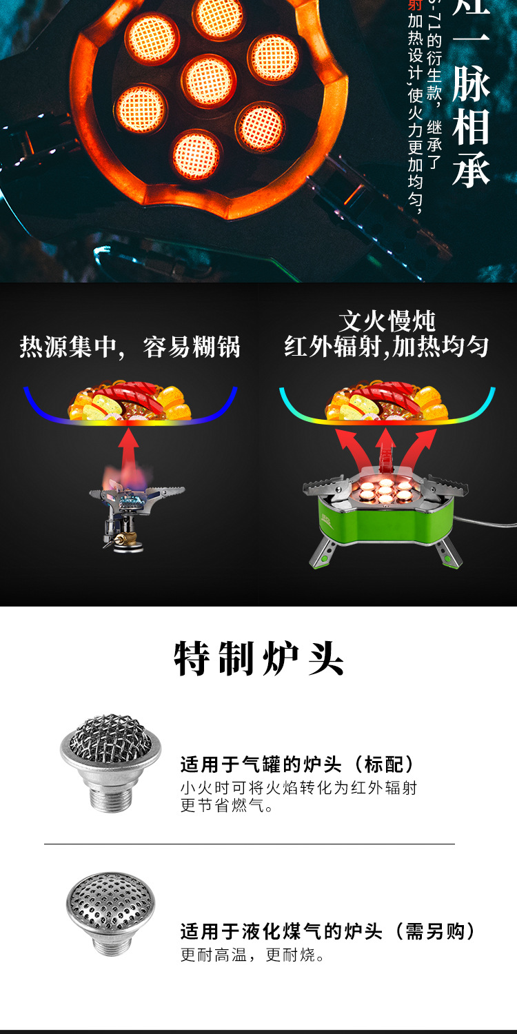 형제 Jie Deng BRS-73 3 헤드 스토브 필드 가스 스토브 캠핑 스토브 휴대용 가스 미니 치열한 스토브스토어 가기
