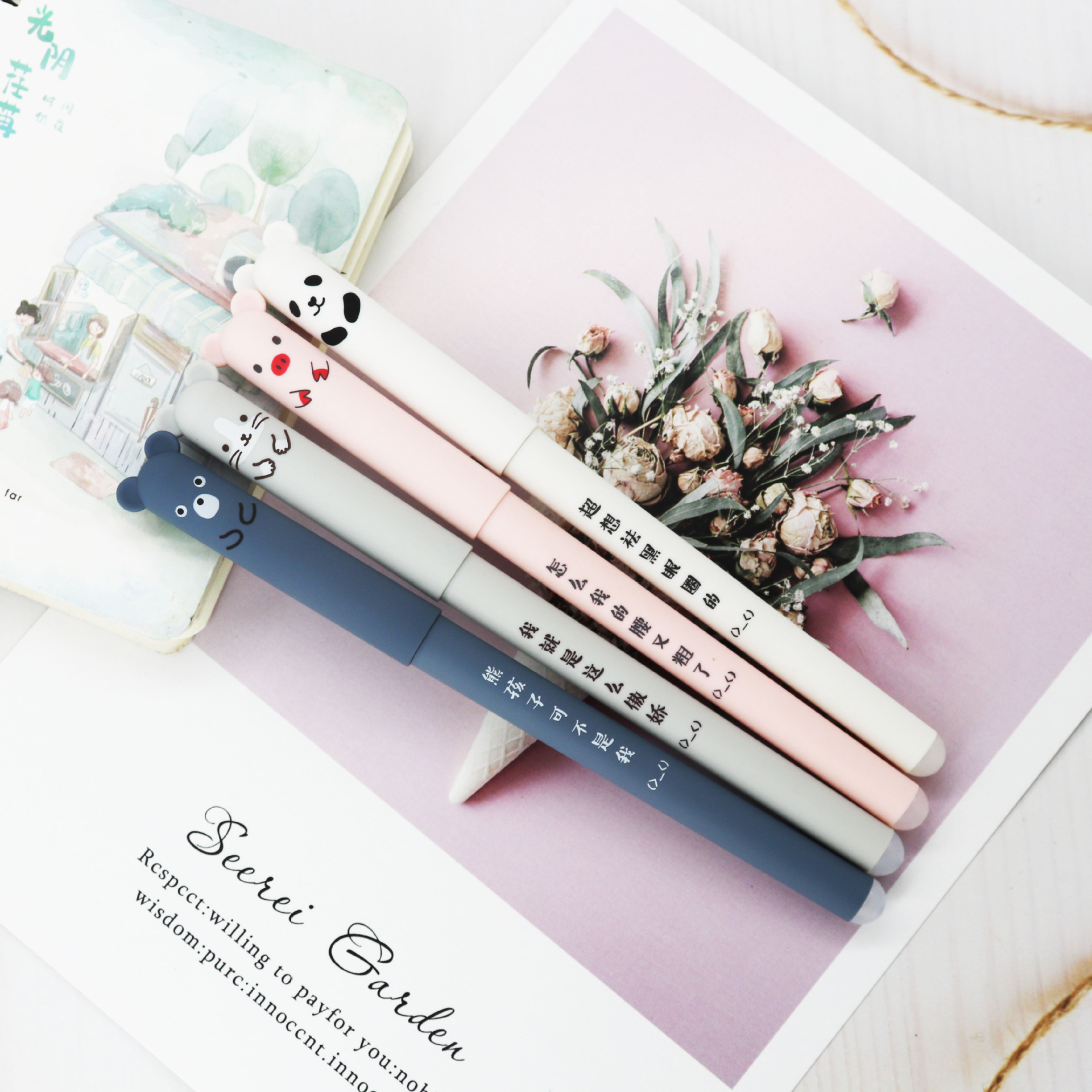 외국 무역용 곰돌이 지워지는 젤 펜 만화 동물 창의적인 열 감지 지워지는 펜 공장 열 감지 지워지는 펜