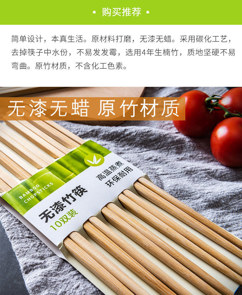 10 쌍 젓가락 대나무 젓가락 비 곰팡이 빠른 가족 대나무 젓가락 가정용 미끄럼 방지 자연 건강 젓가락 도매스토어 가기