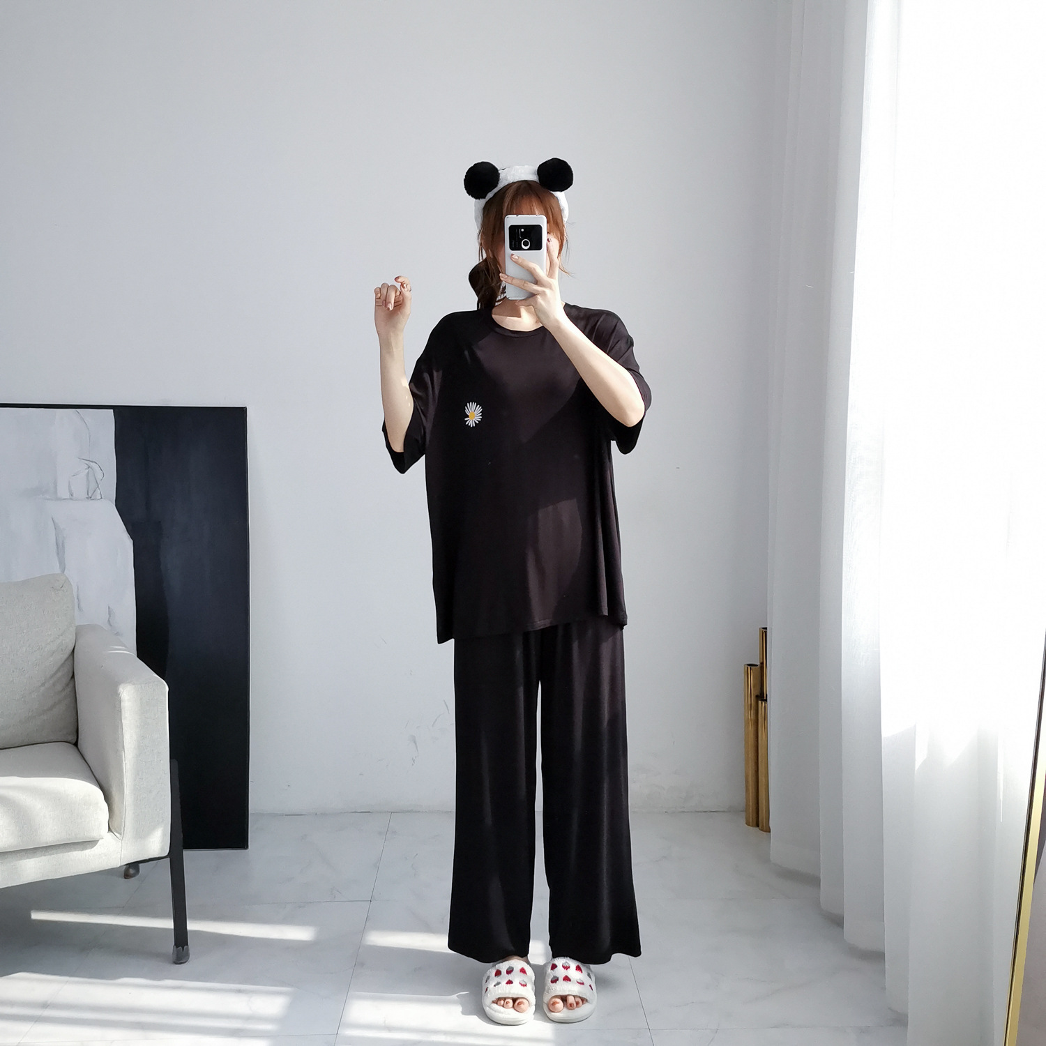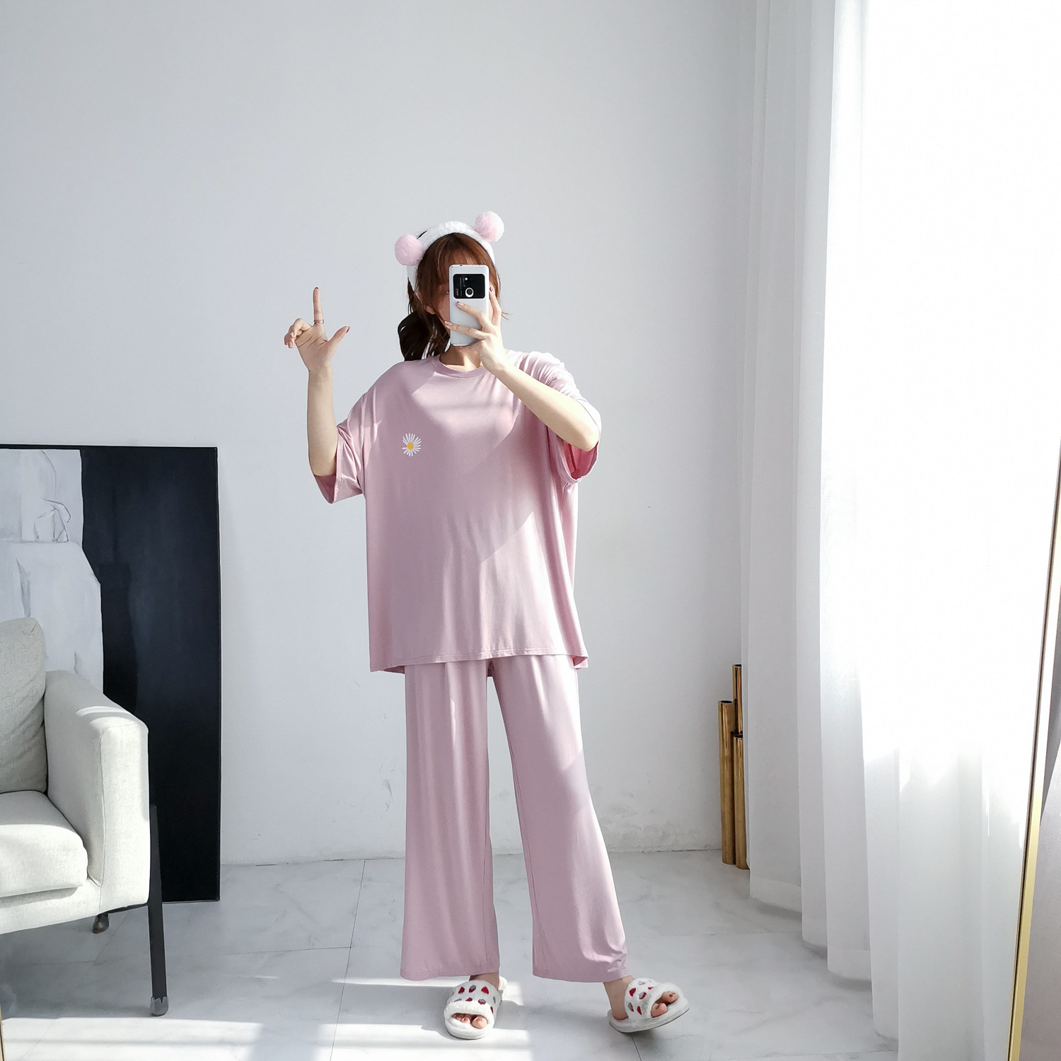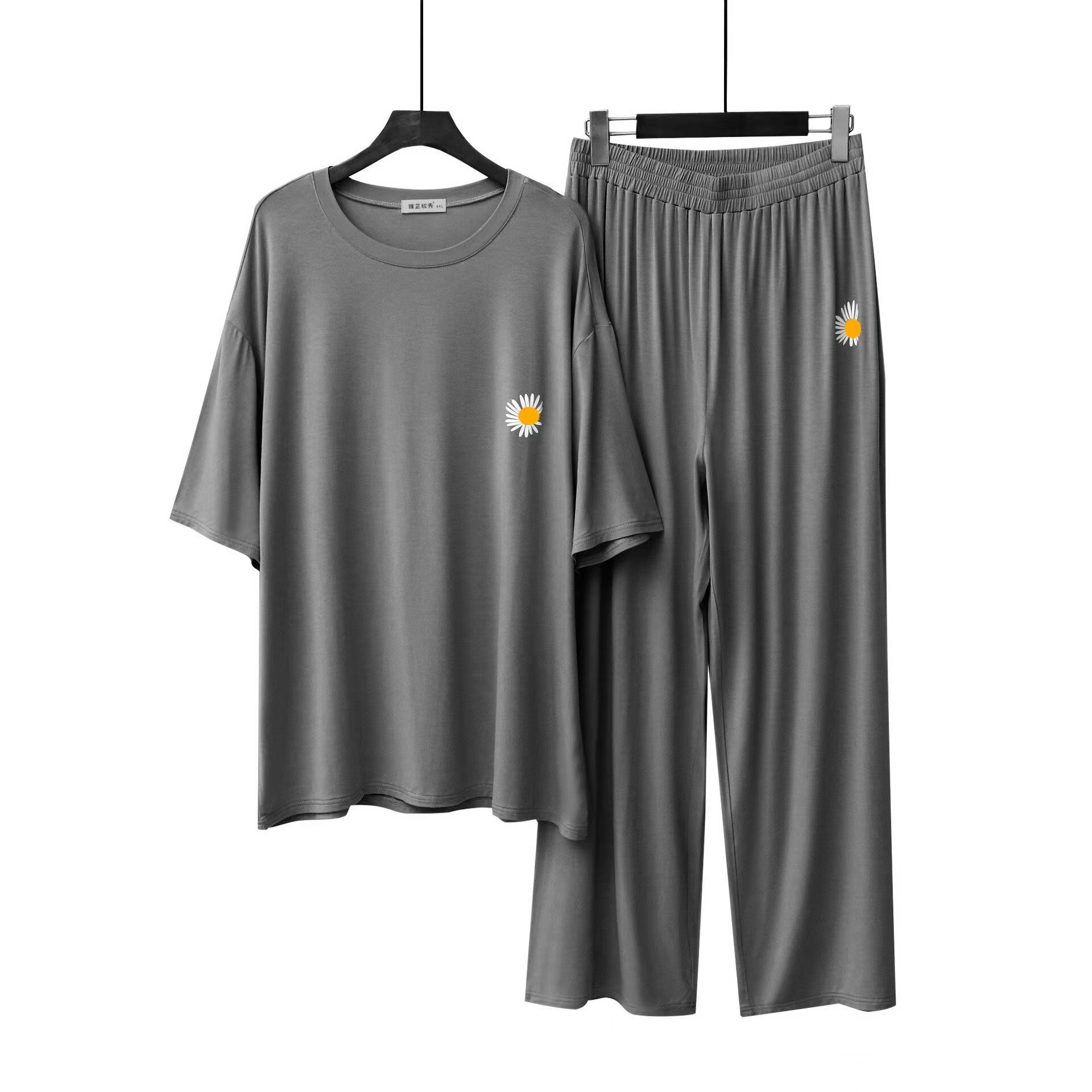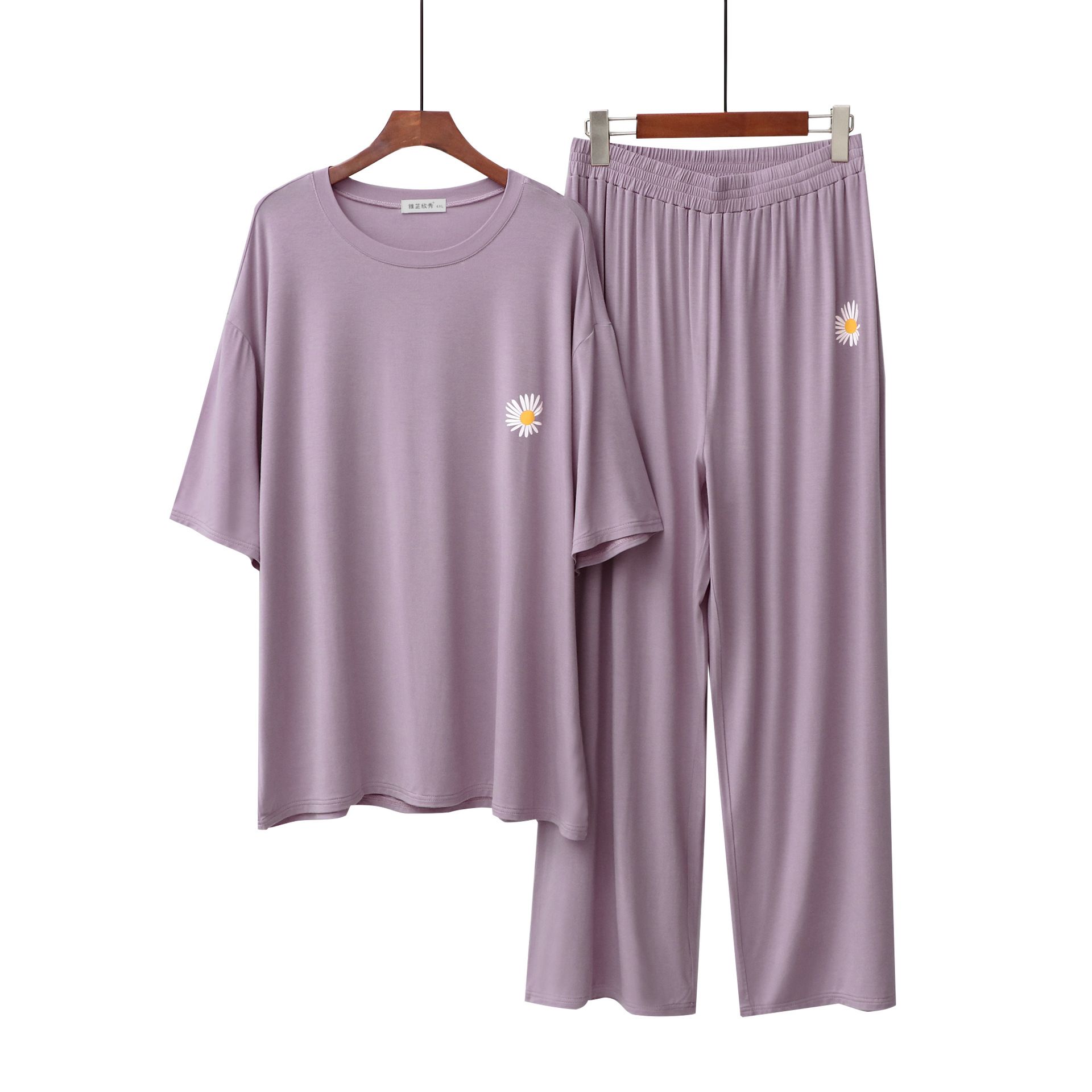 플러스 사이즈 모달 잠옷 여성 200kg 통통녀 여름 얇은 데이지 반팔 바지 홈 의류 투피스 세트