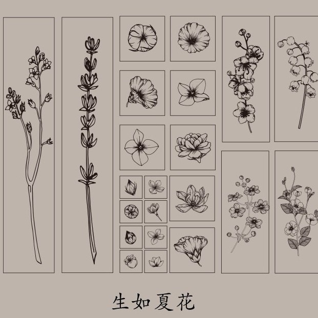 枝繁叶茂系列手账印章套装 木头橡皮印章 木质小印章