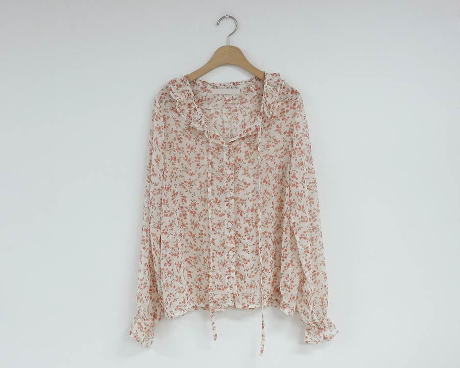부드러운 스타일 탑 퍼프 슬리브 배꼽 커버 2023 쉬폰 셔츠 웨스턴 스타일 긴 소매 달콤한 꽃 셔츠 여성의 디자인 감각