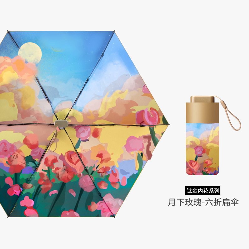 • [티타늄 60% 플랫 우산] 달밑 장미 (초경량 휴대용)
