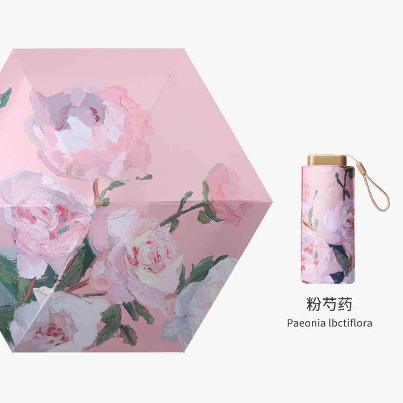 • [검정 아교 6 배 플랫 우산] 파우더 모란 (초경량 휴대용)