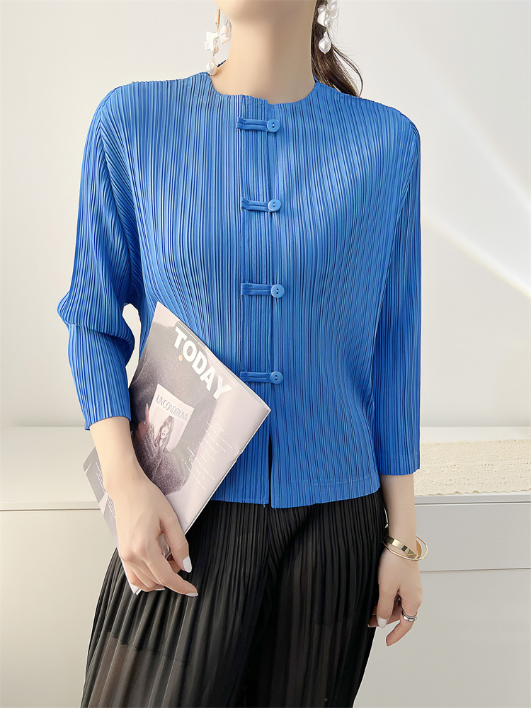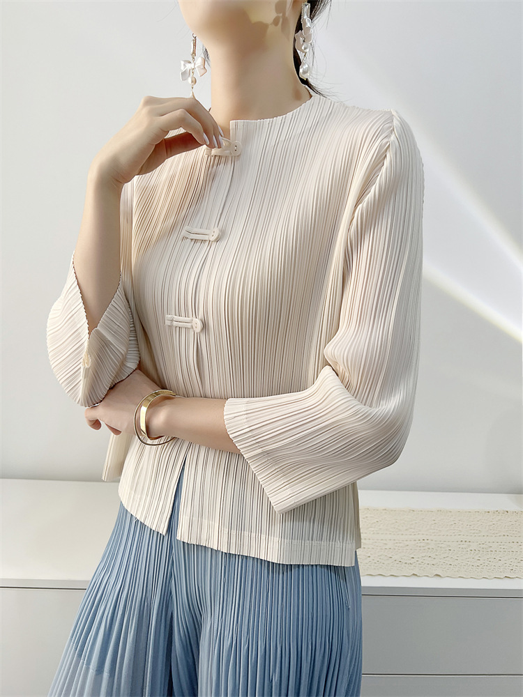 여성용 플리츠 코트 2025 봄, 가을 신작 카디건 탑 여성용 복고풍 버클 슬림핏 편안한 캐주얼 틈새 시장스토어 가기