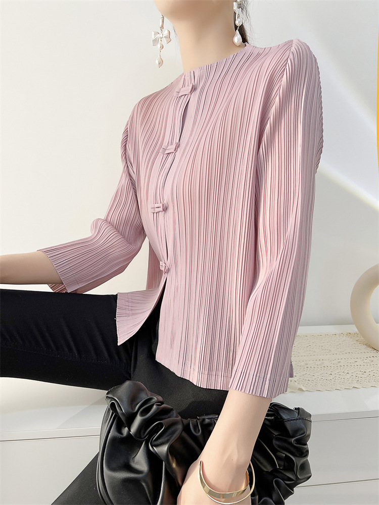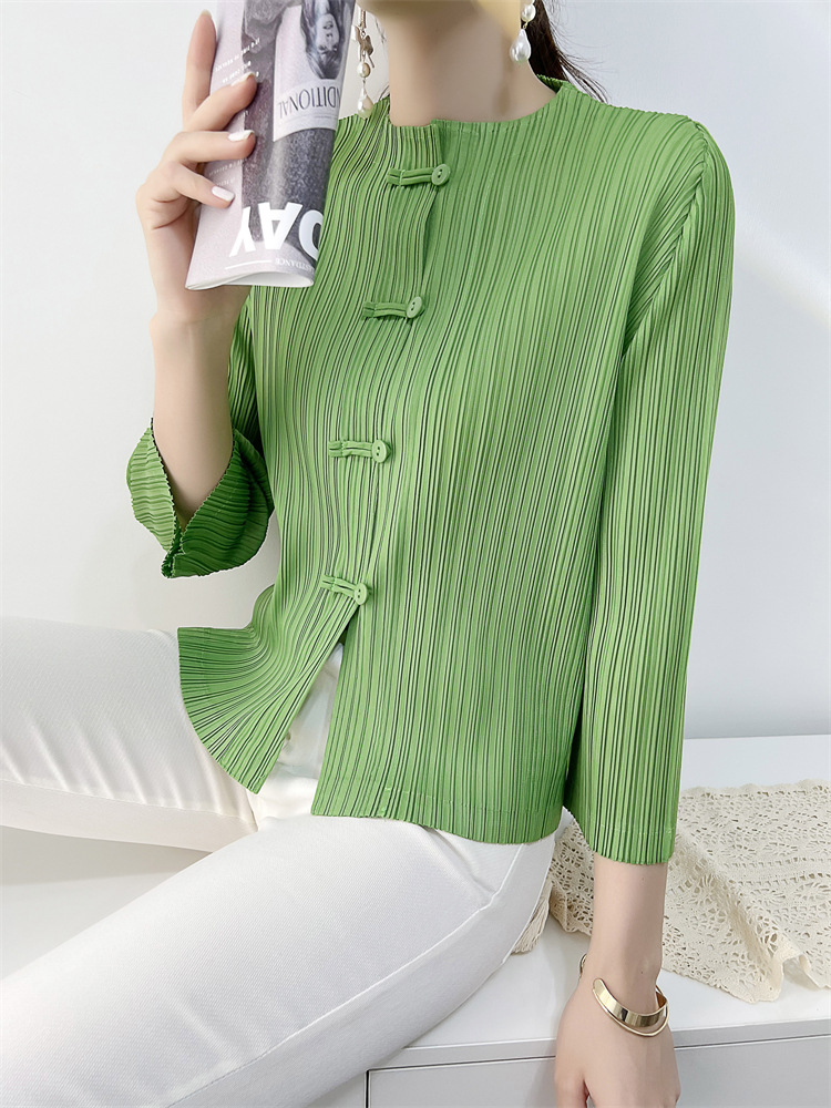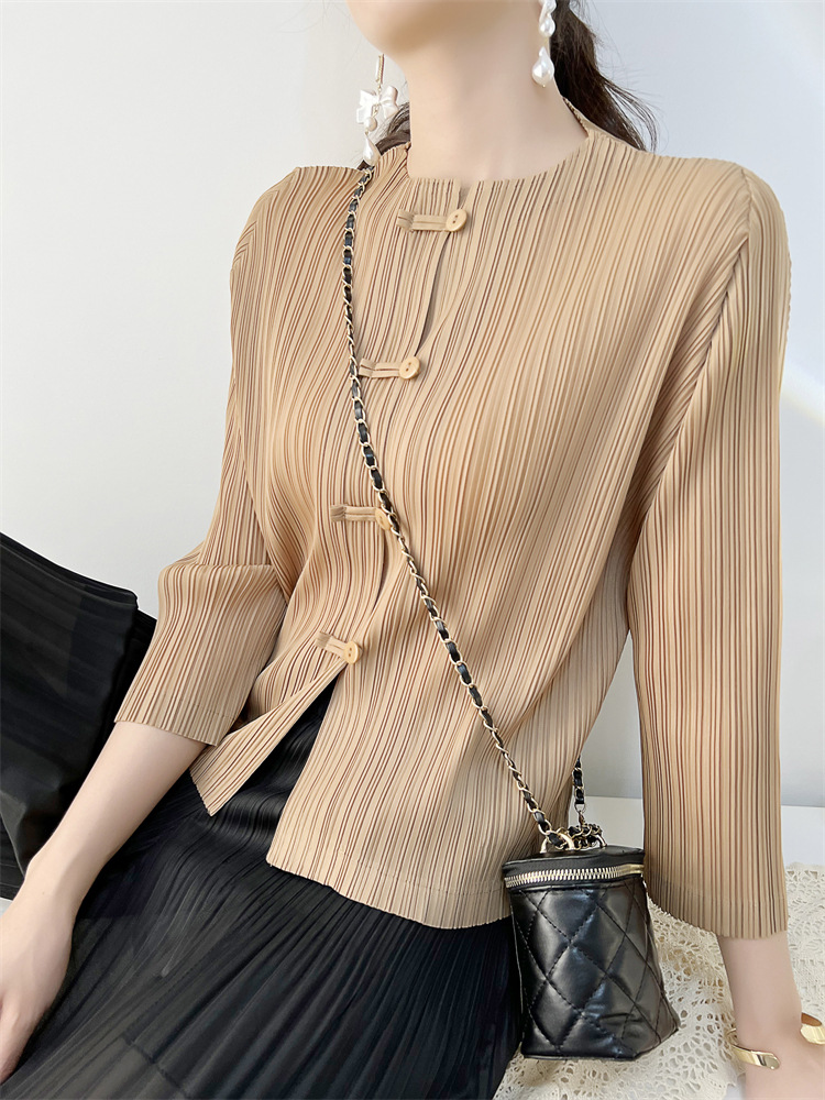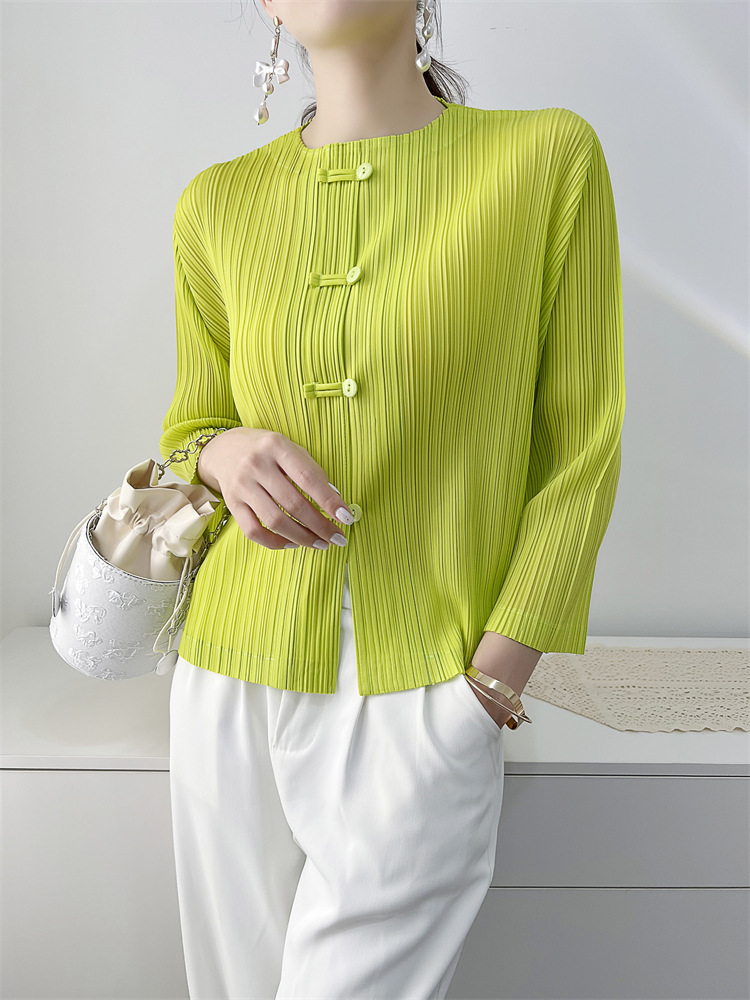 여성용 플리츠 코트 2025 봄, 가을 신작 카디건 탑 여성용 복고풍 버클 슬림핏 편안한 캐주얼 틈새 시장