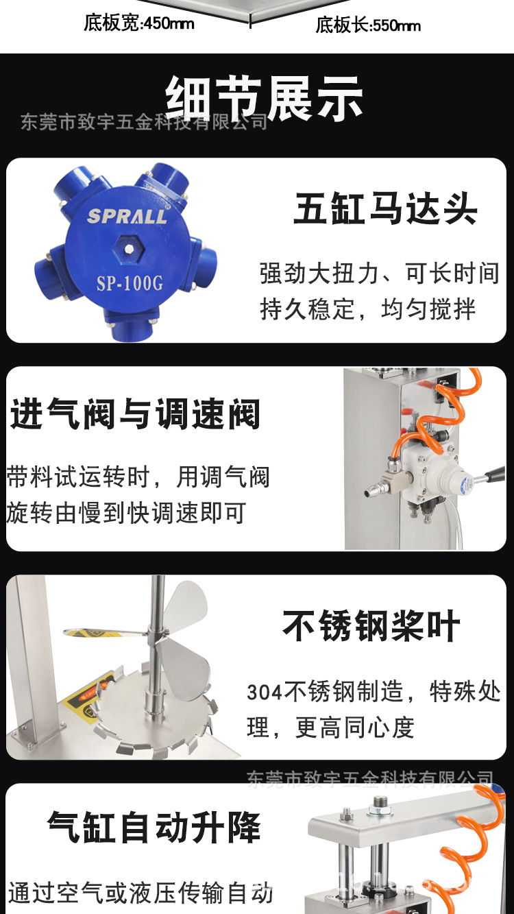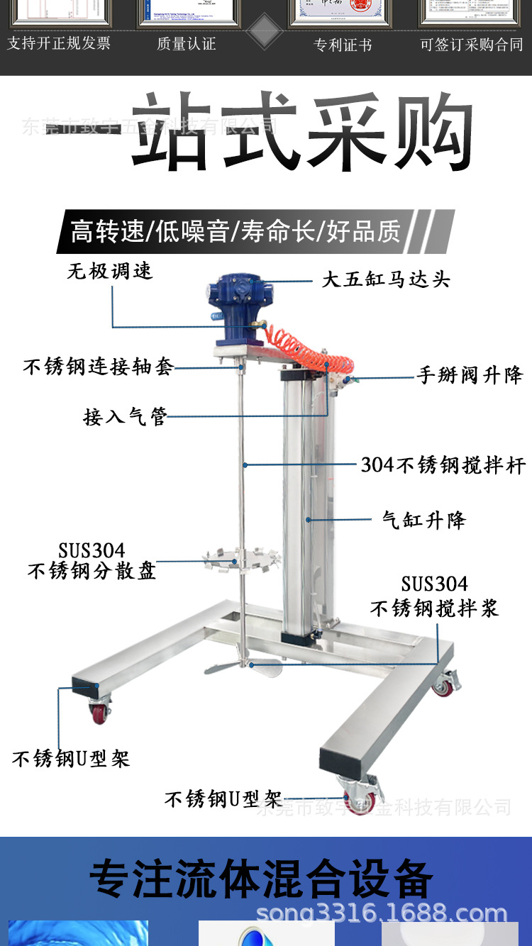 SPRALL/Zhimei 공압 자동 교반기 스테인레스 스틸 프레임 페인트 접착제 리프팅 수직 교반기스토어 가기