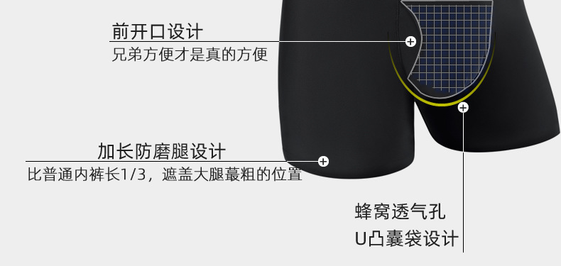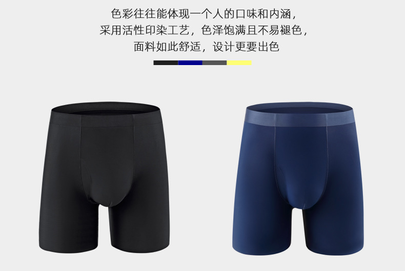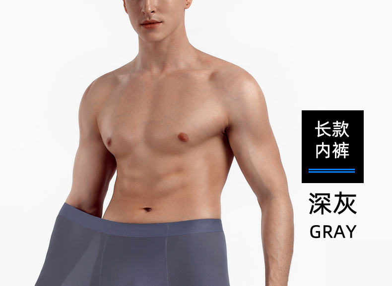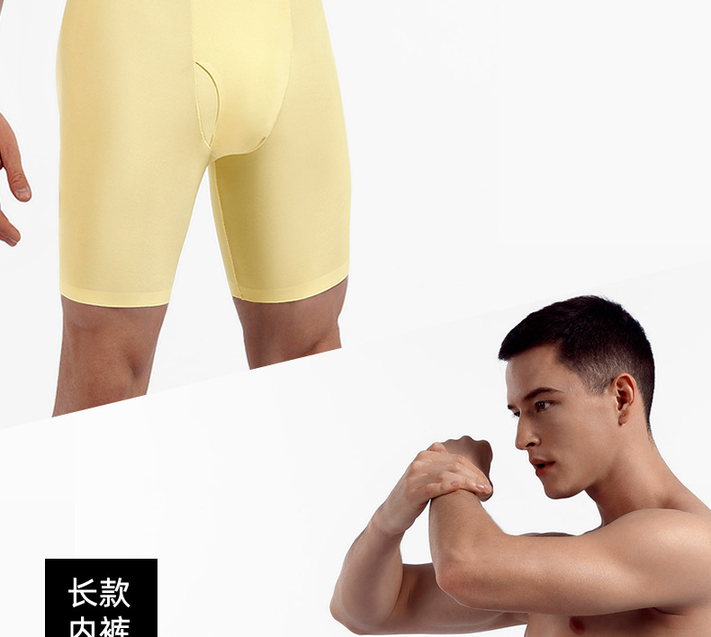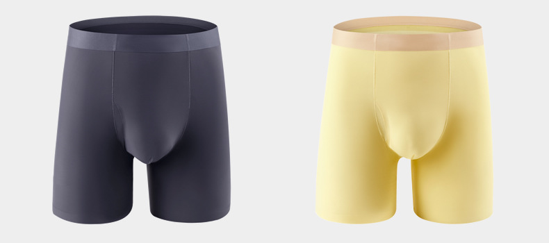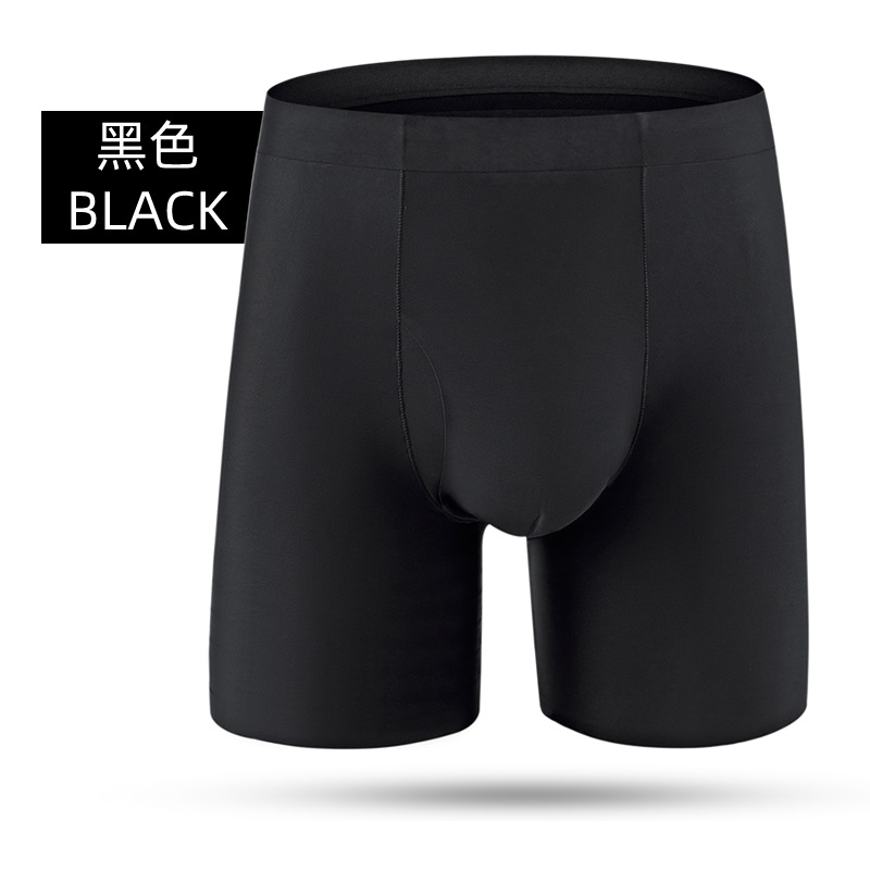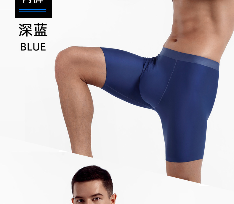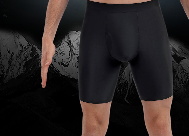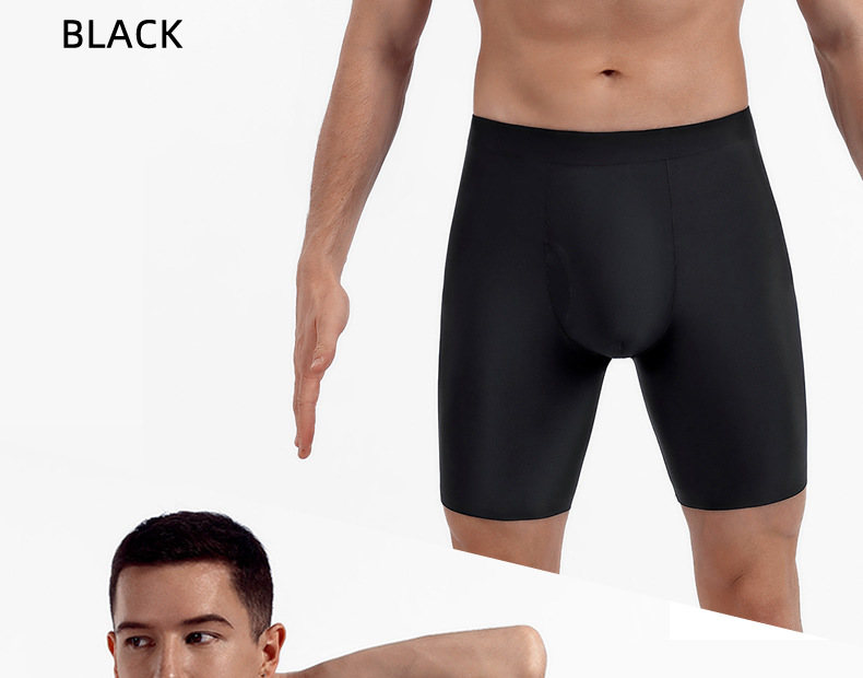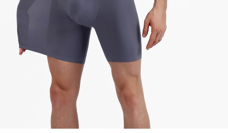 아이스 실크 무봉제 남성용 스포츠 롱 팬티, 다리 마찰 방지, U자형 볼록 포켓, 앞면 오픈형, 피트니스 사각 팬티스토어 가기