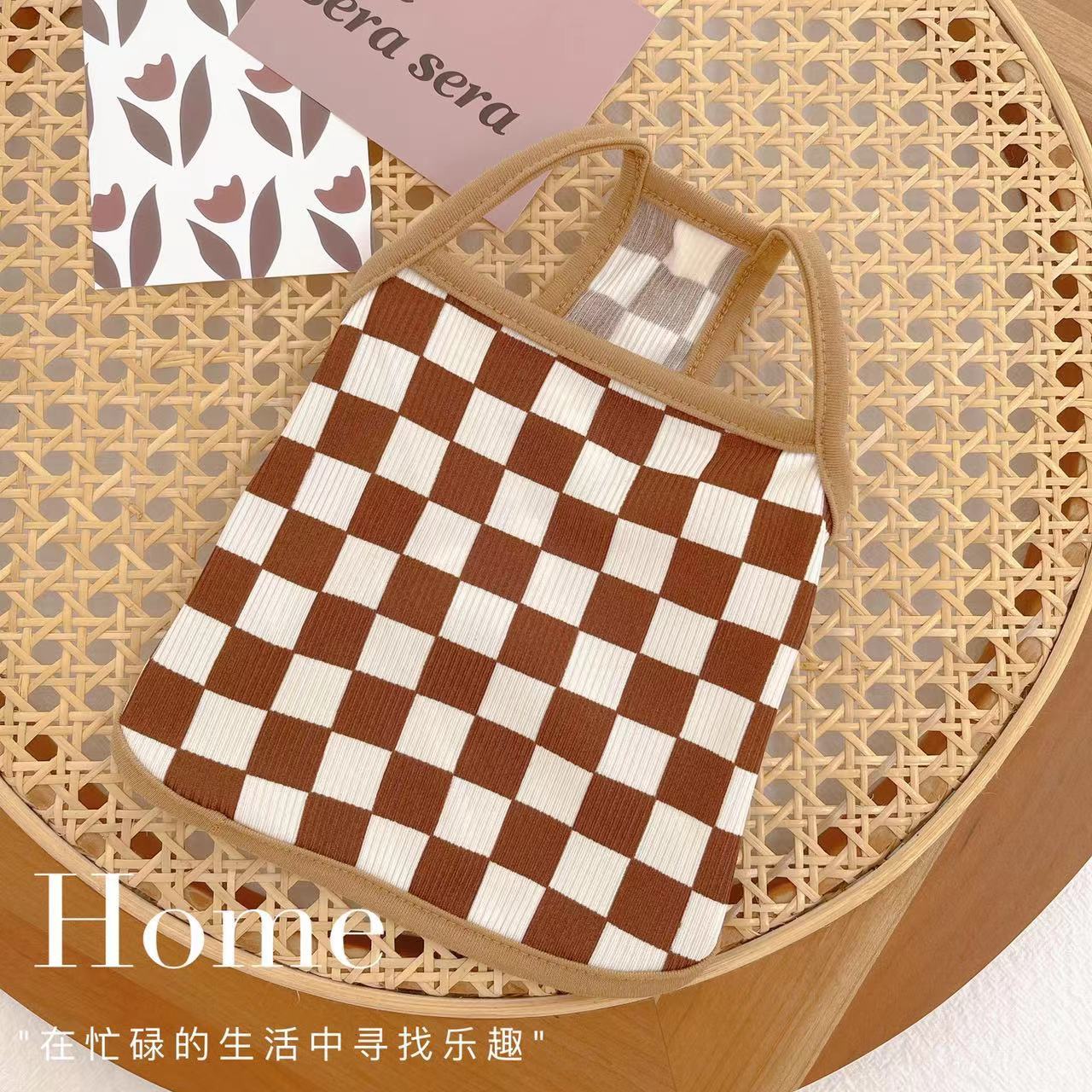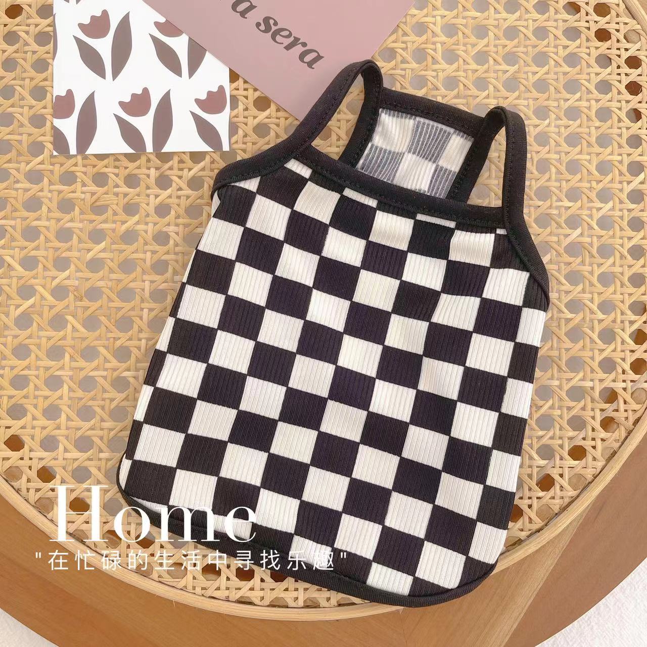 애완 동물 의류 개 고양이 봄과 여름 체스 판 홈 캐미솔 테디 베어 자외선 차단제 통기성 멋진 옷스토어 가기