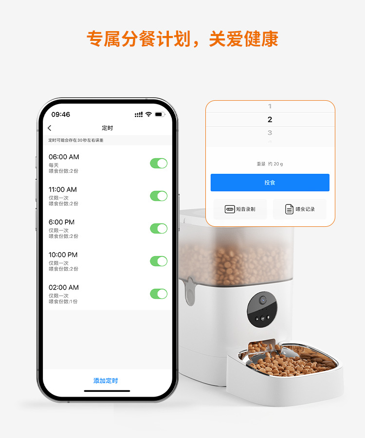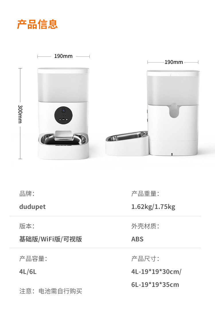 Du Du 고양이 지능형 피더 애완 동물 자동 타이밍 정량적 고양이 사료 개 사료 와이파이 원격 수유 기계