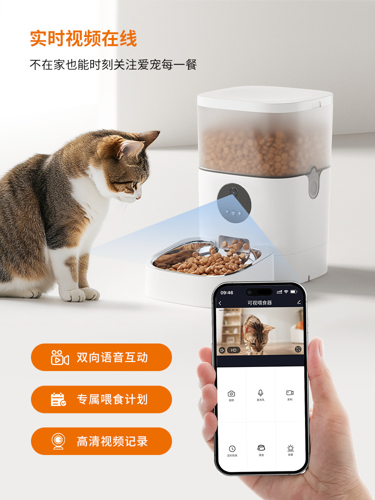 Du Du 고양이 지능형 피더 애완 동물 자동 타이밍 정량적 고양이 사료 개 사료 와이파이 원격 수유 기계스토어 가기