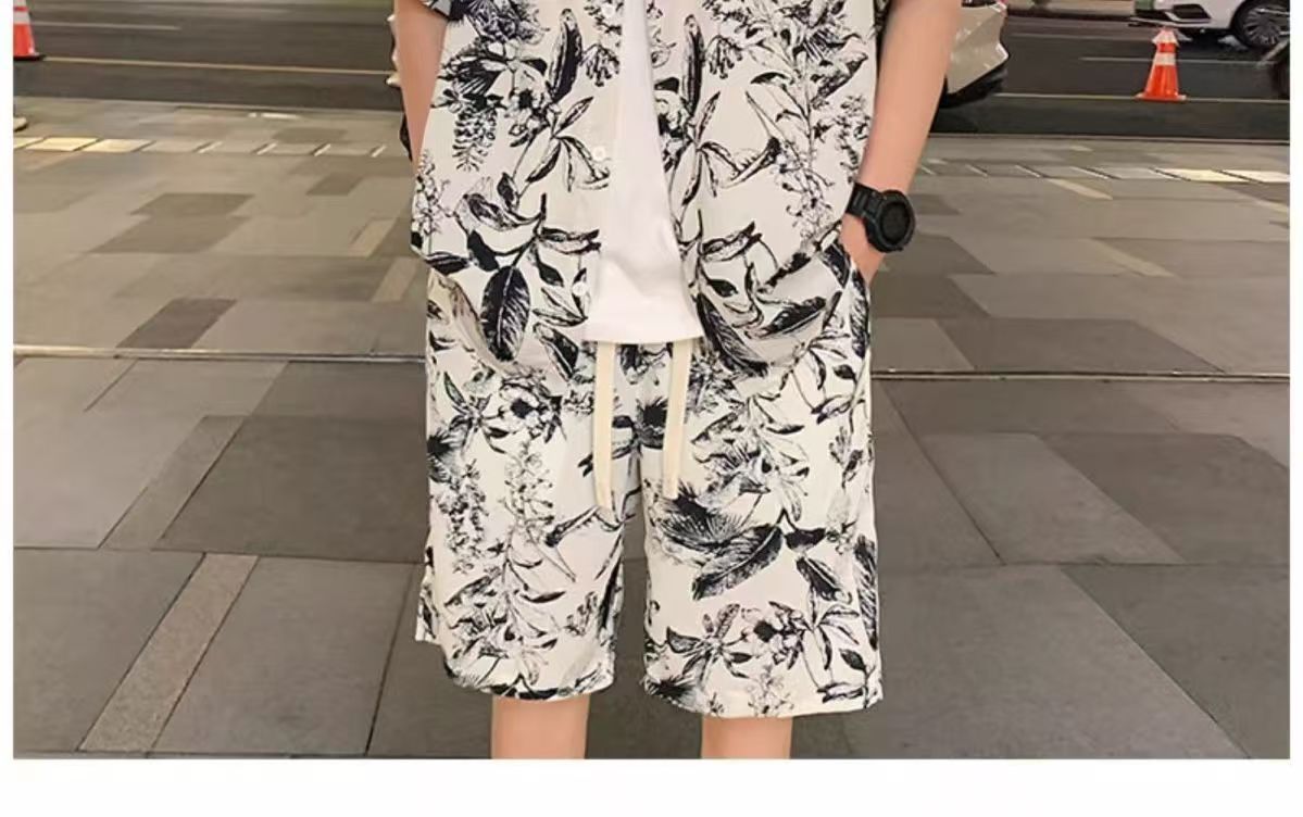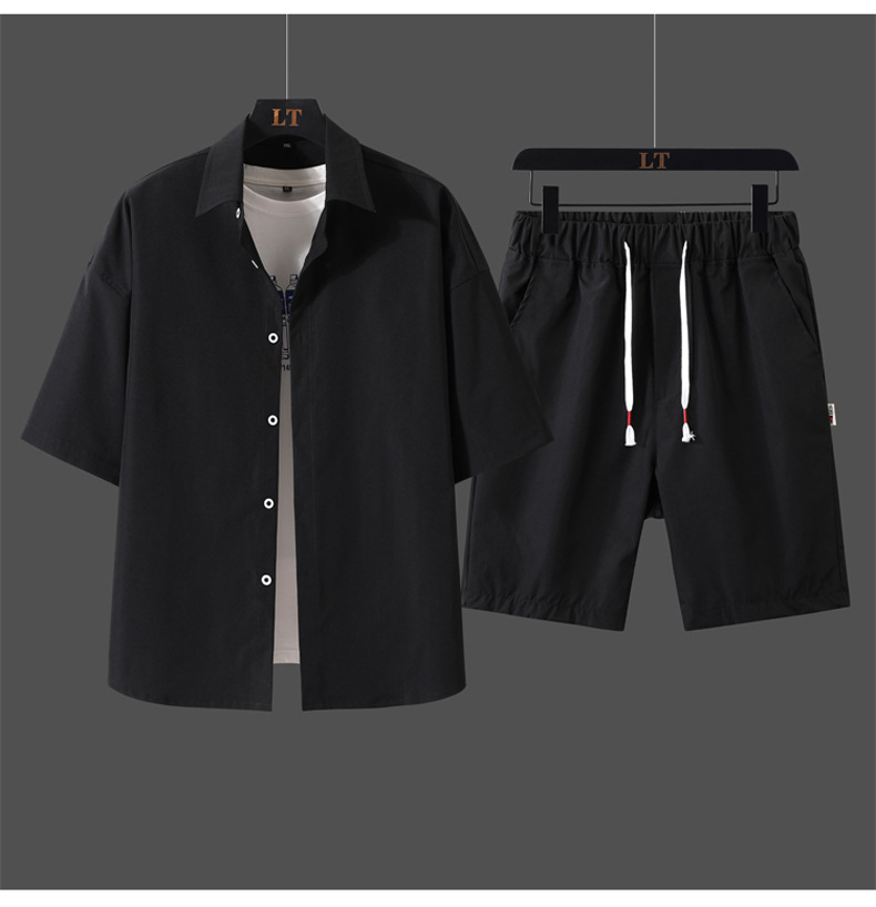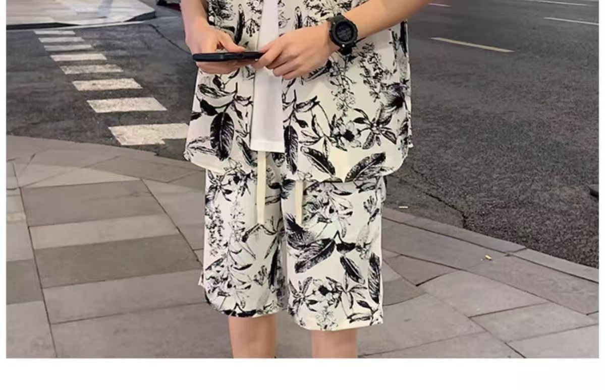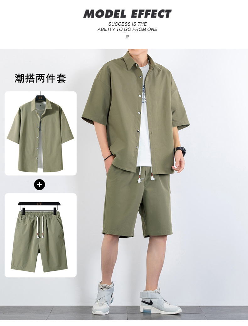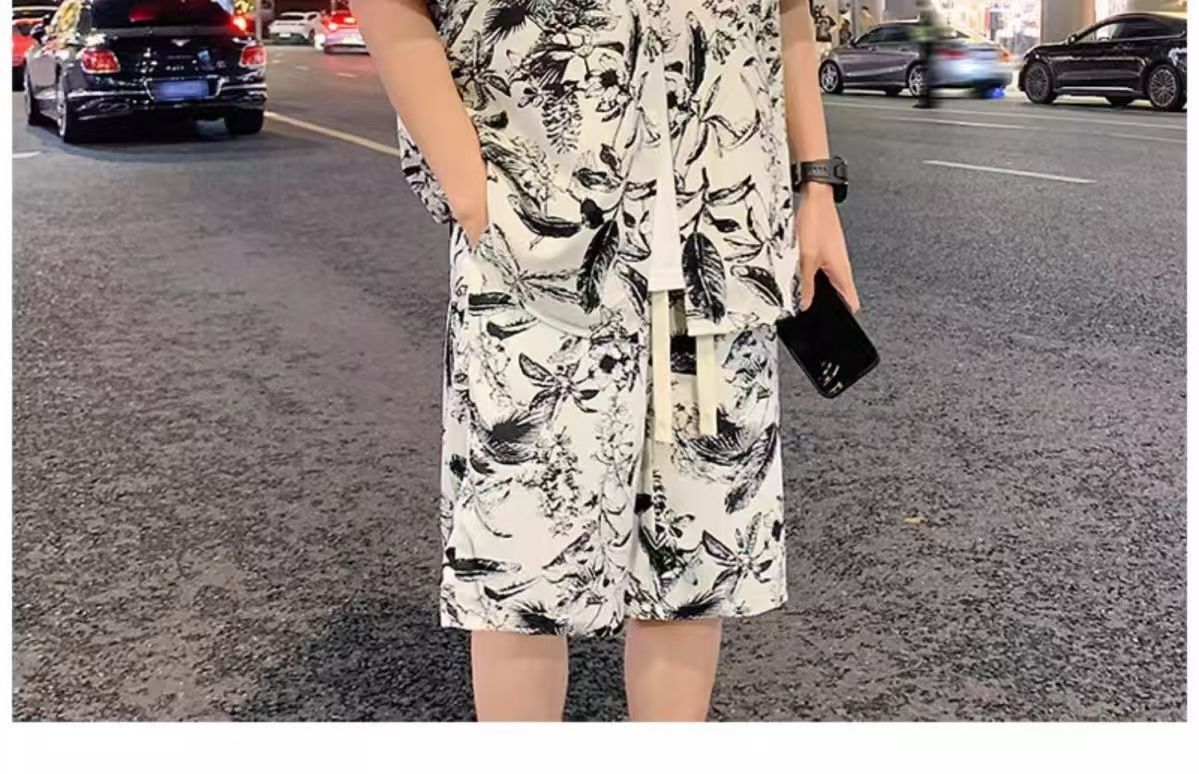 크로스 보더 남성 캐주얼 정장 여름 얇은 패션 의류 매칭 트렌드 한국 패션 반바지 반팔 세트
