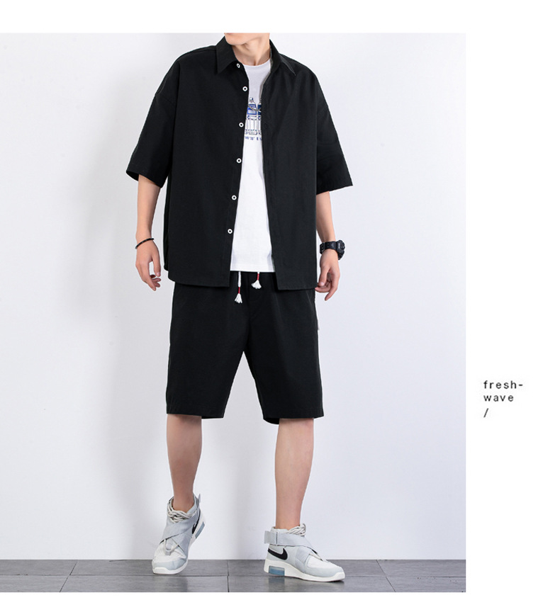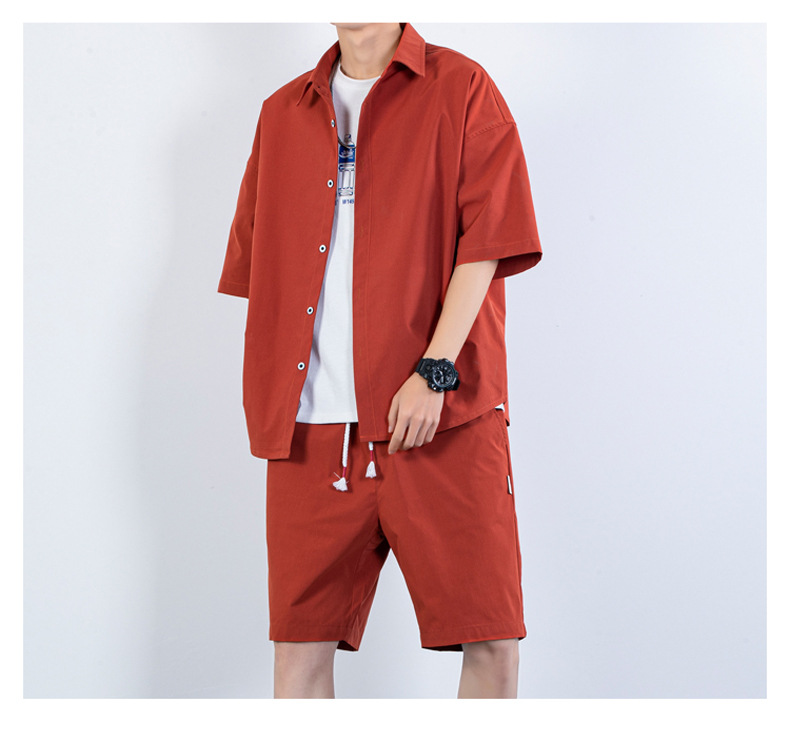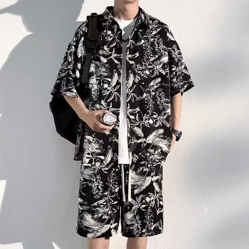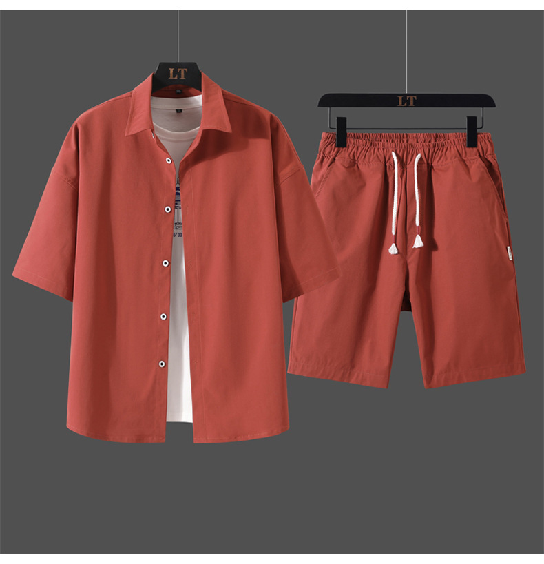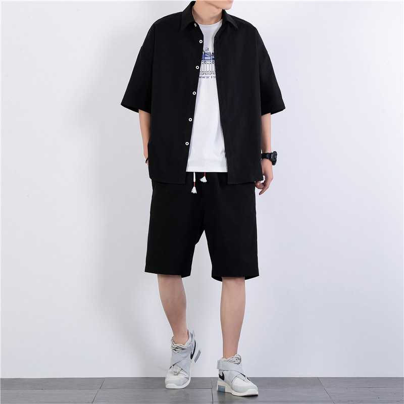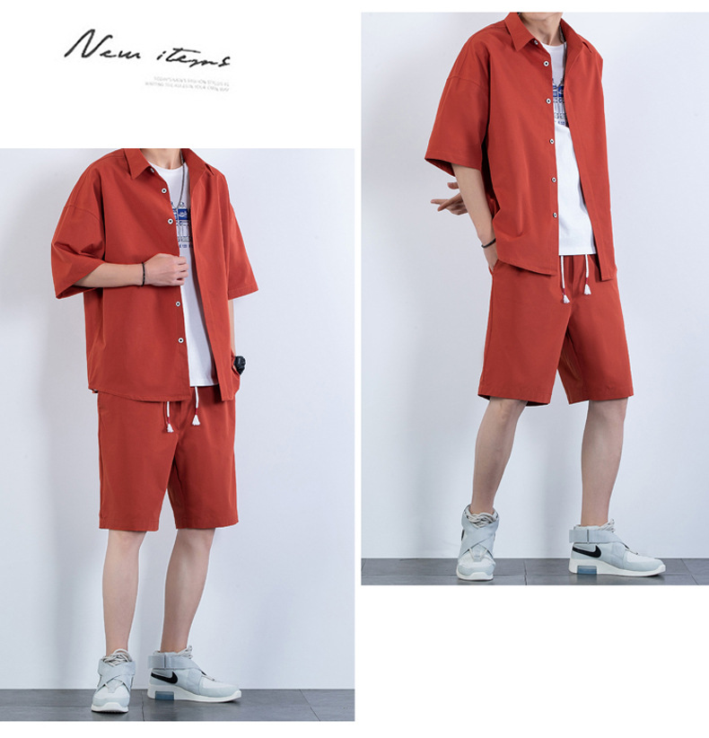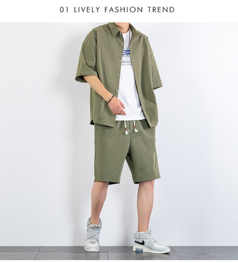 크로스 보더 남성 캐주얼 정장 여름 얇은 패션 의류 매칭 트렌드 한국 패션 반바지 반팔 세트