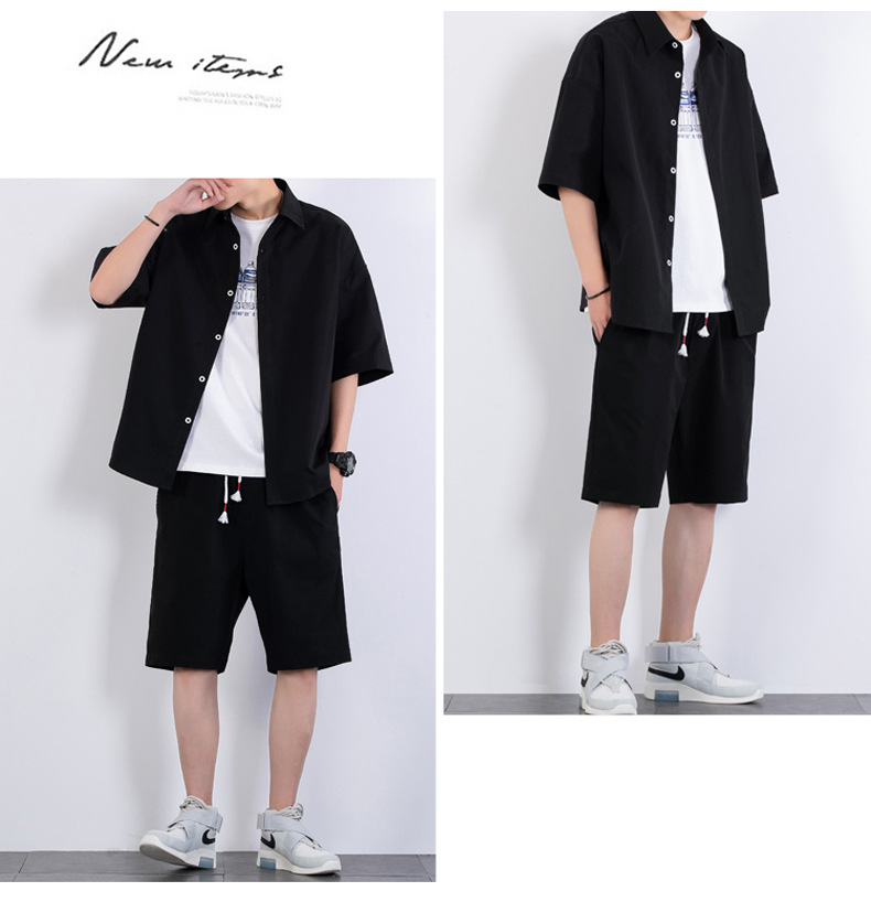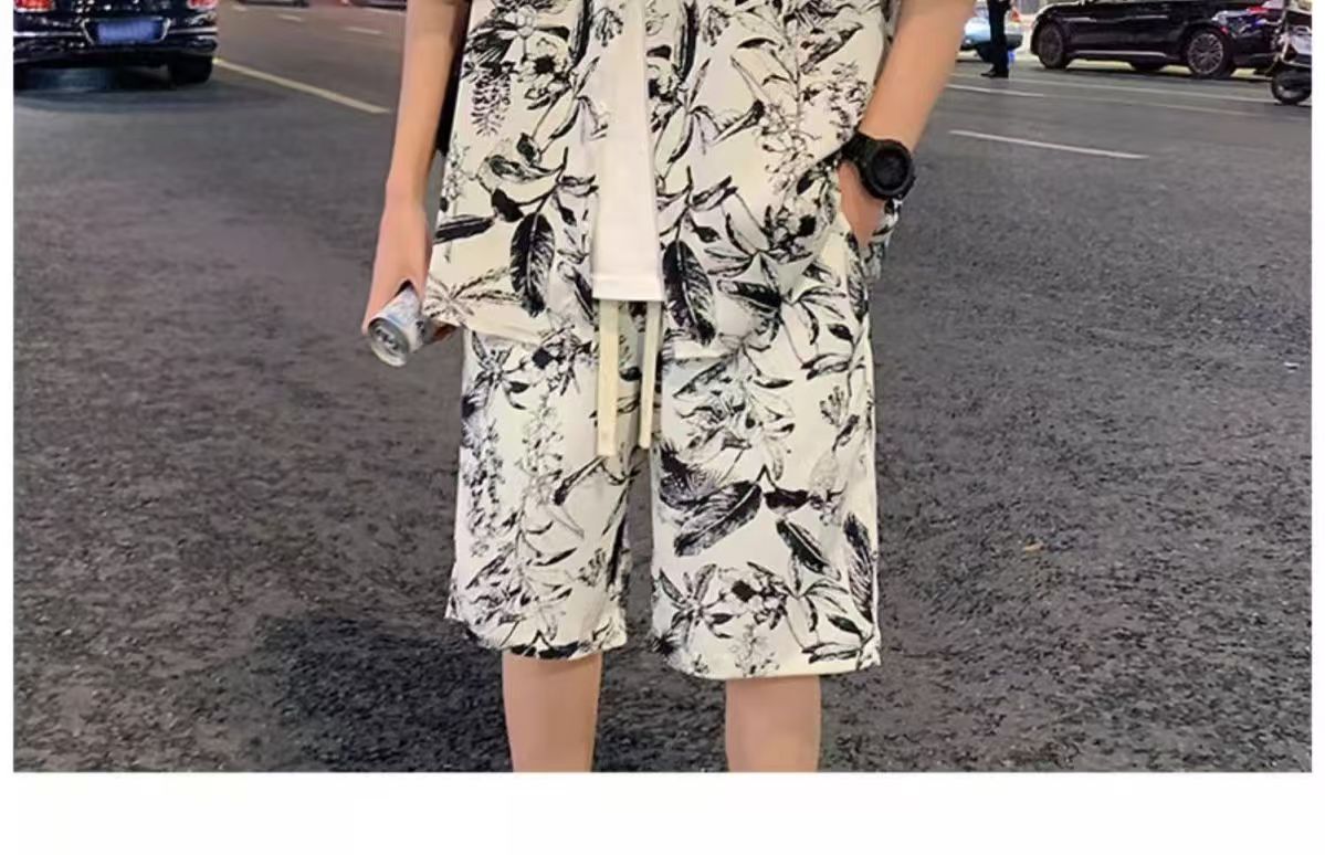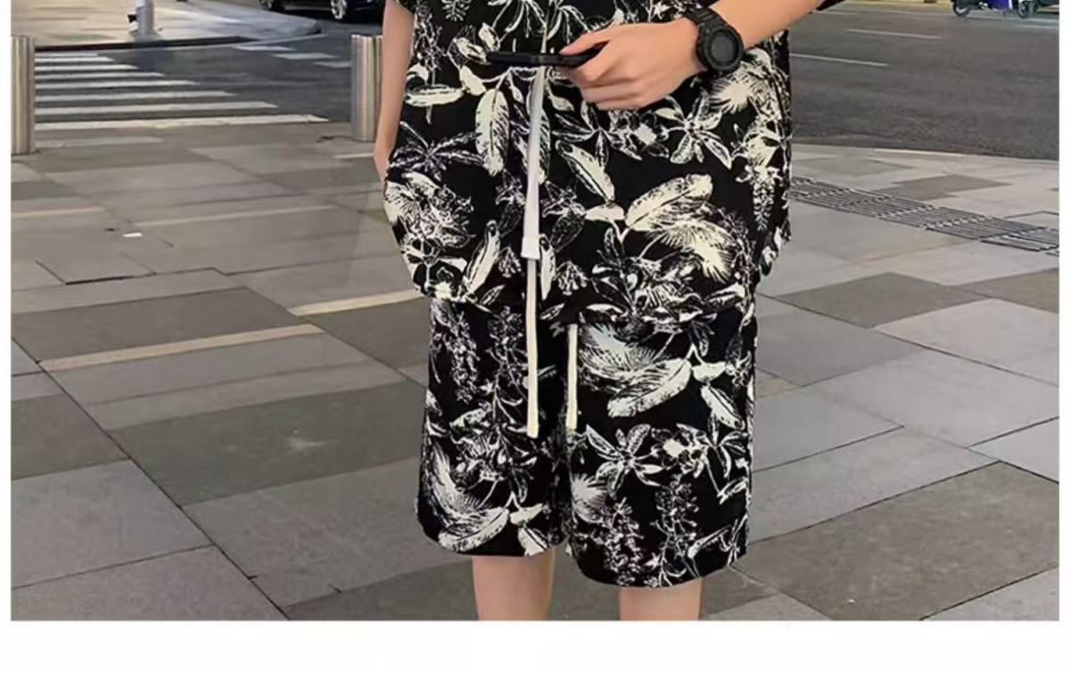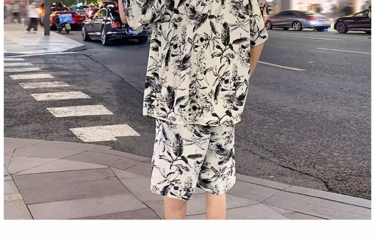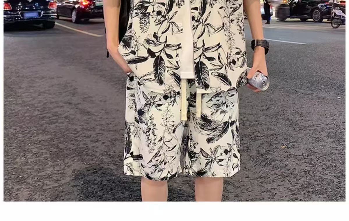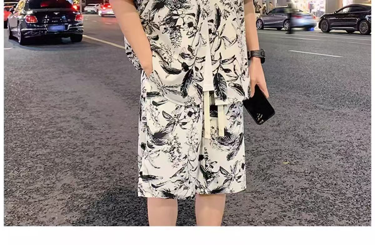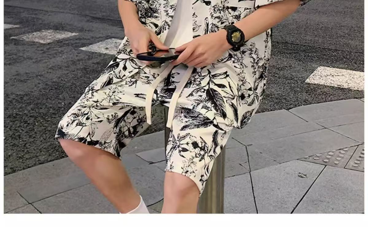 크로스 보더 남성 캐주얼 정장 여름 얇은 패션 의류 매칭 트렌드 한국 패션 반바지 반팔 세트스토어 가기
