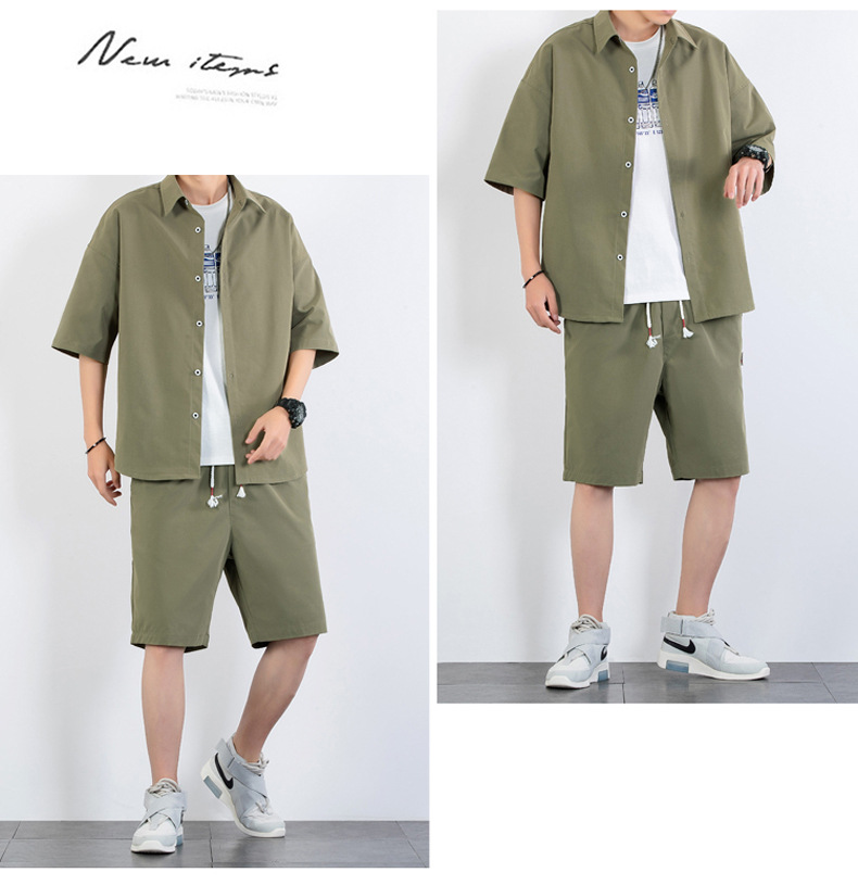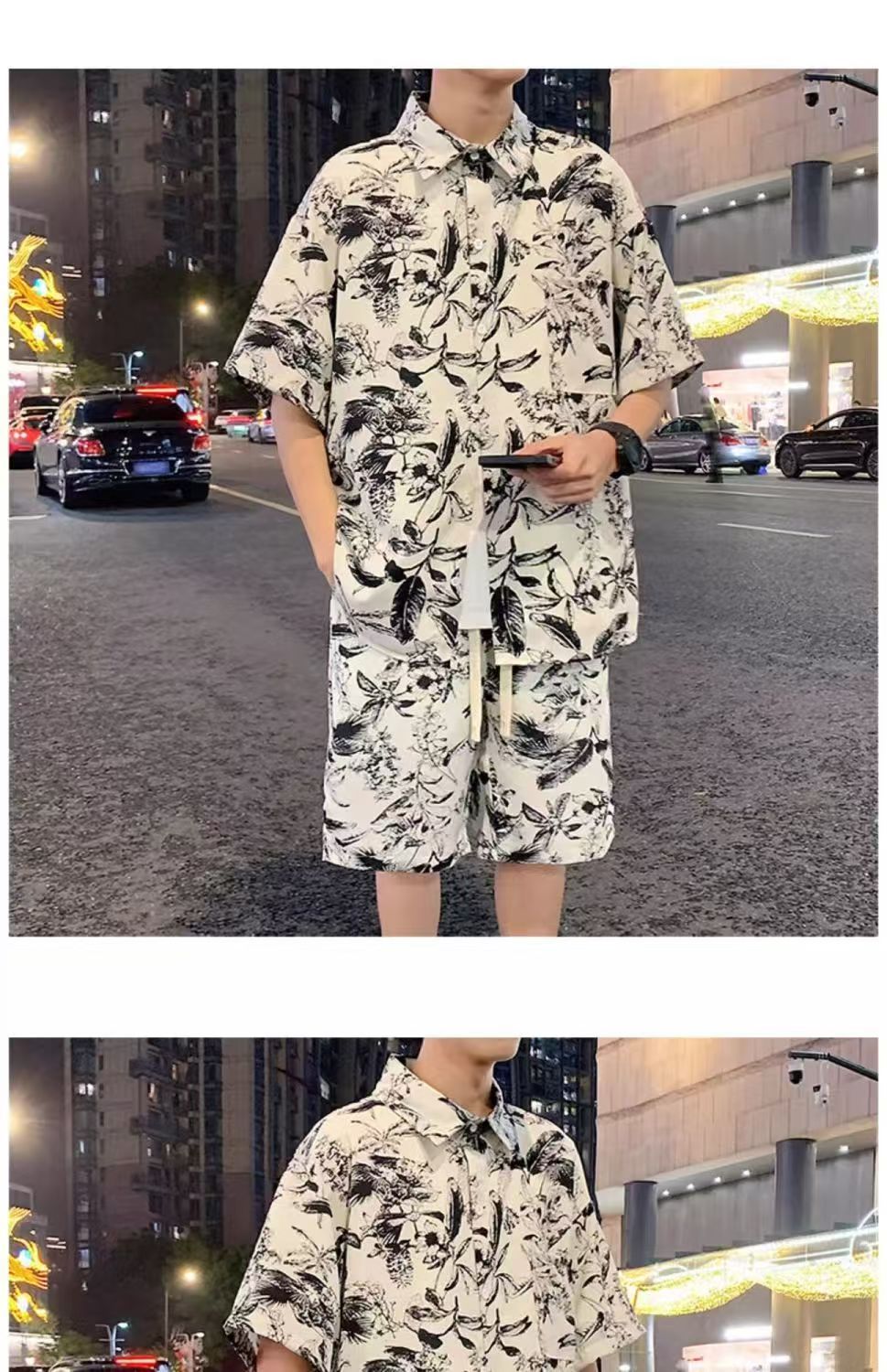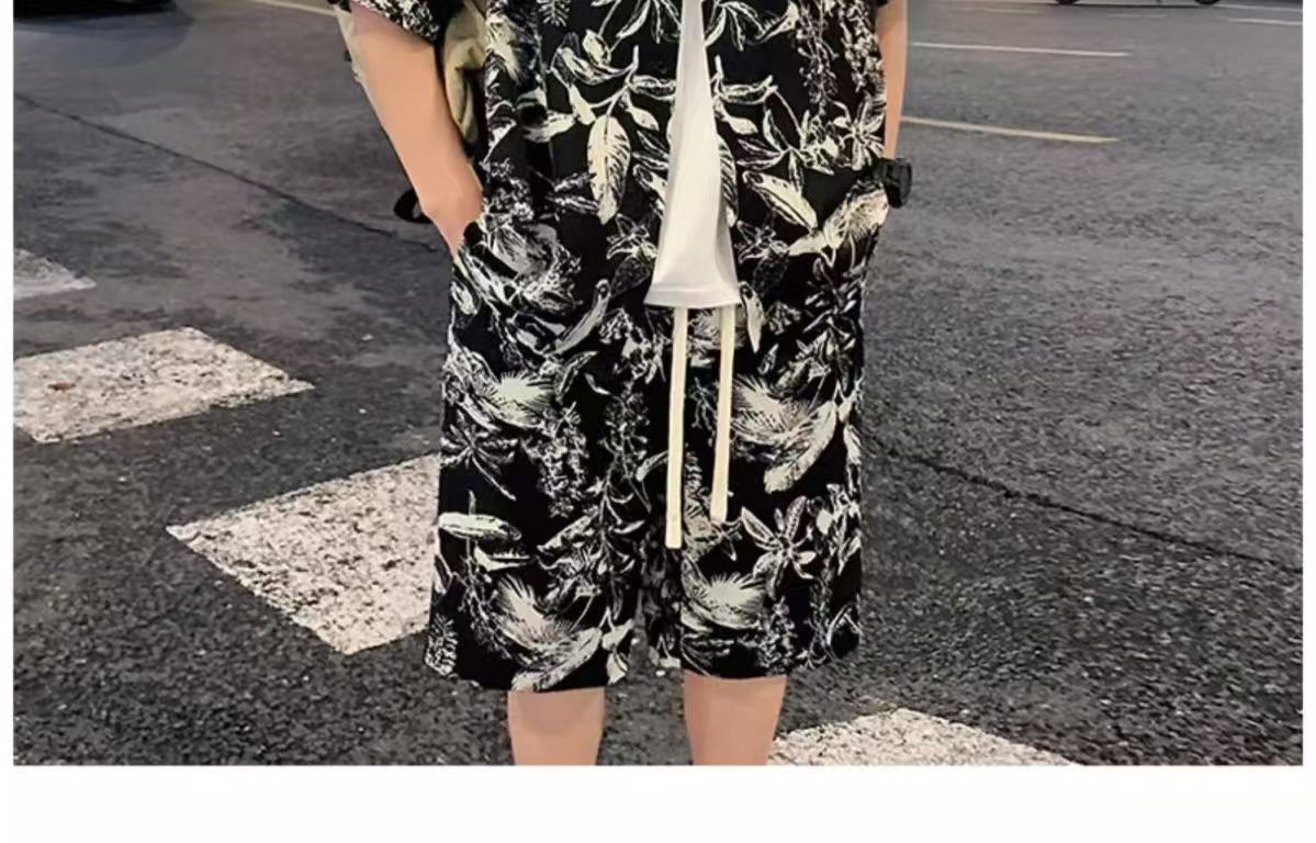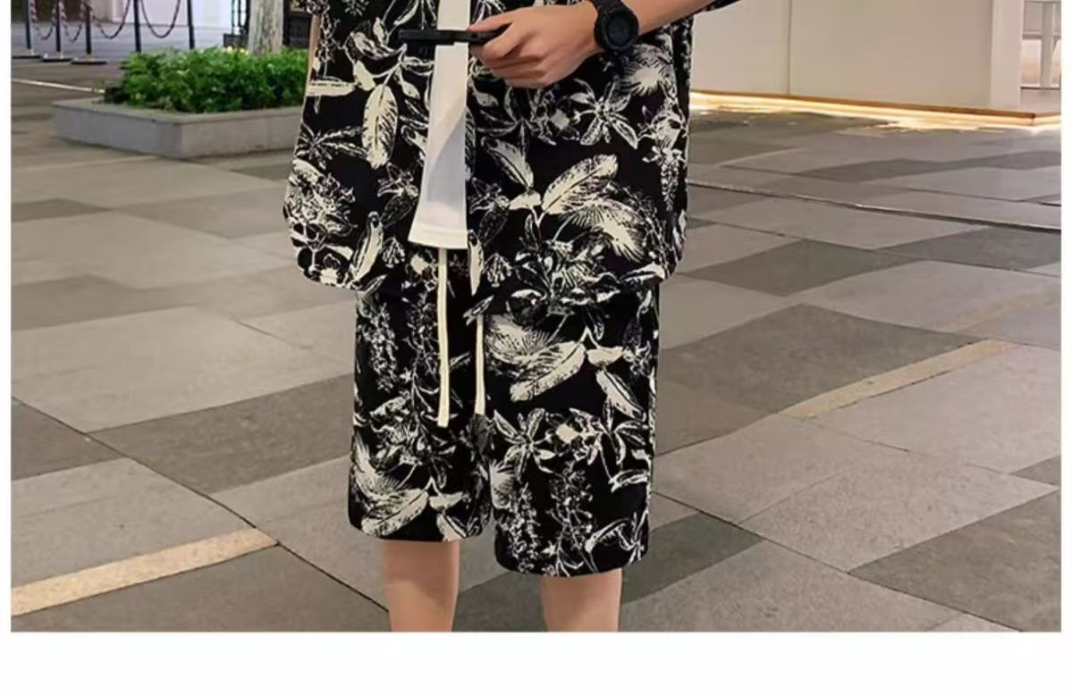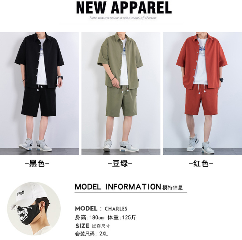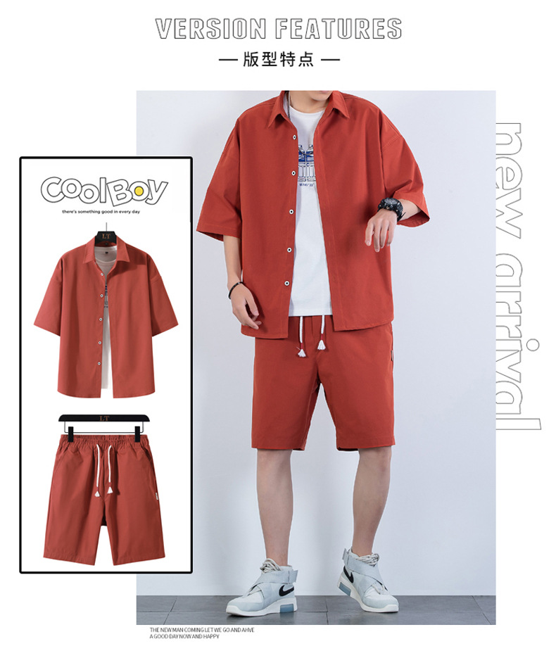 크로스 보더 남성 캐주얼 정장 여름 얇은 패션 의류 매칭 트렌드 한국 패션 반바지 반팔 세트스토어 가기
