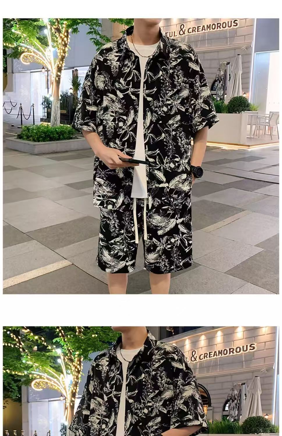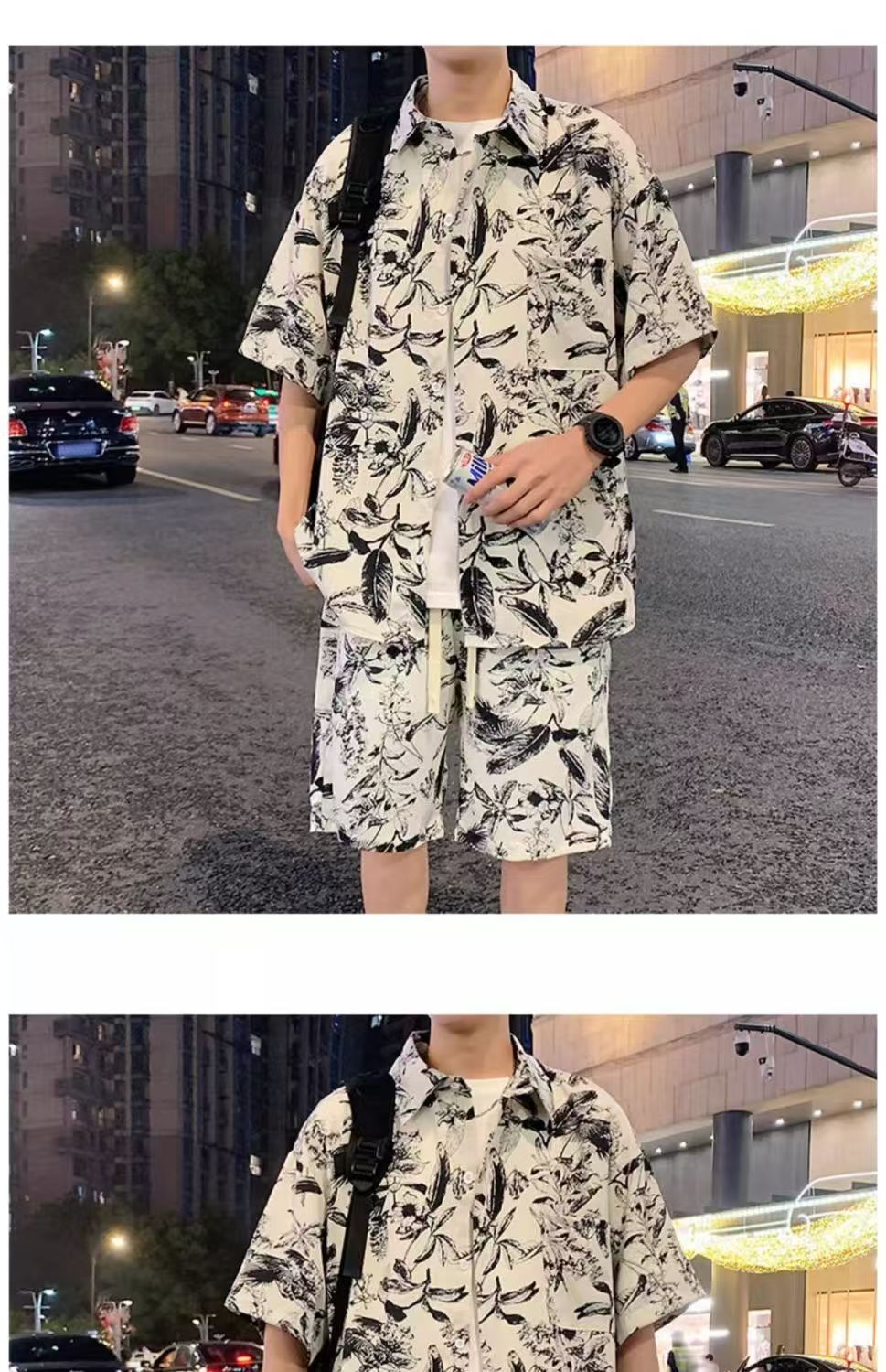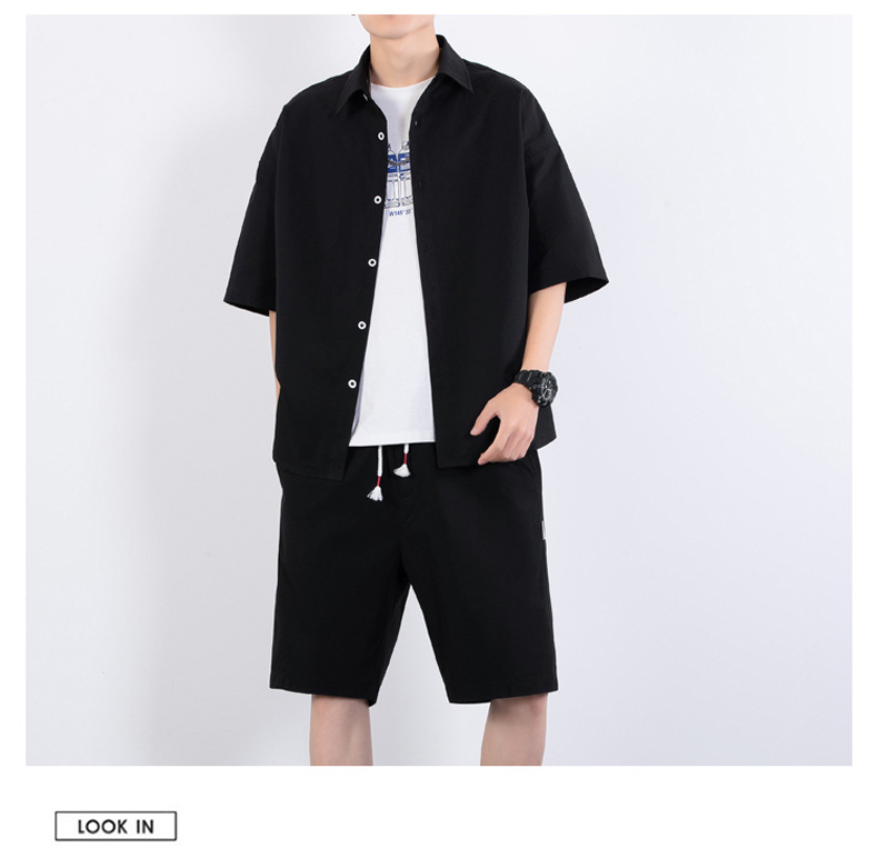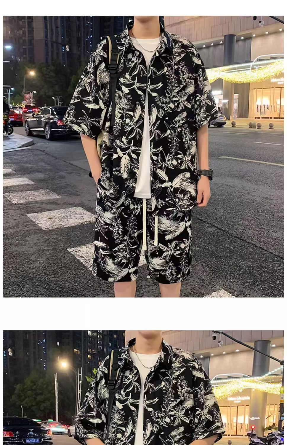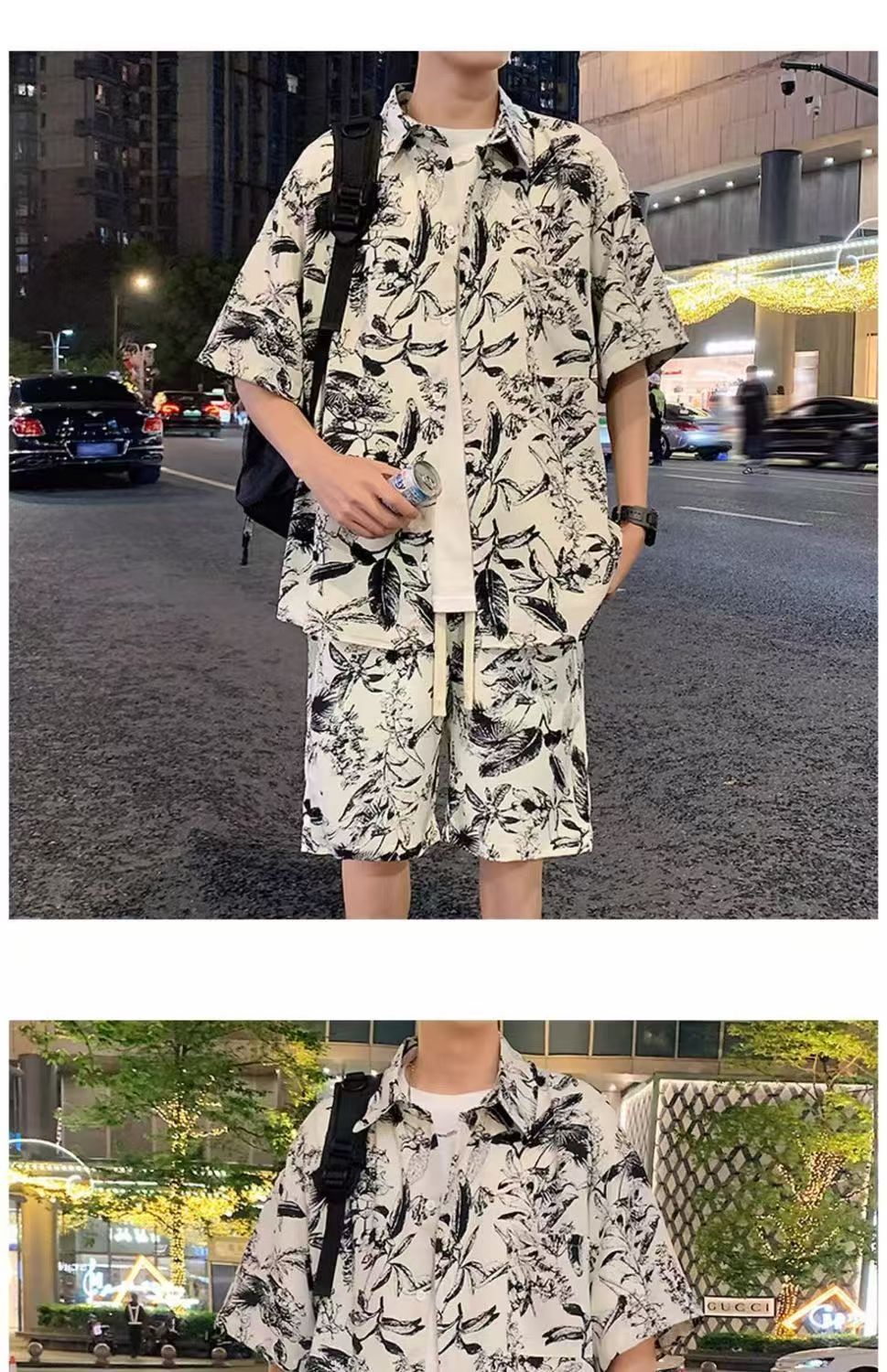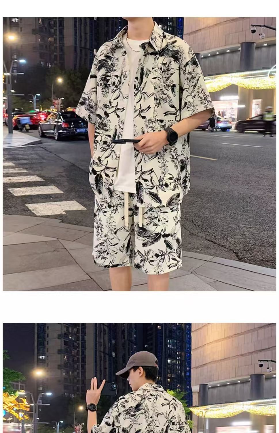 크로스 보더 남성 캐주얼 정장 여름 얇은 패션 의류 매칭 트렌드 한국 패션 반바지 반팔 세트스토어 가기