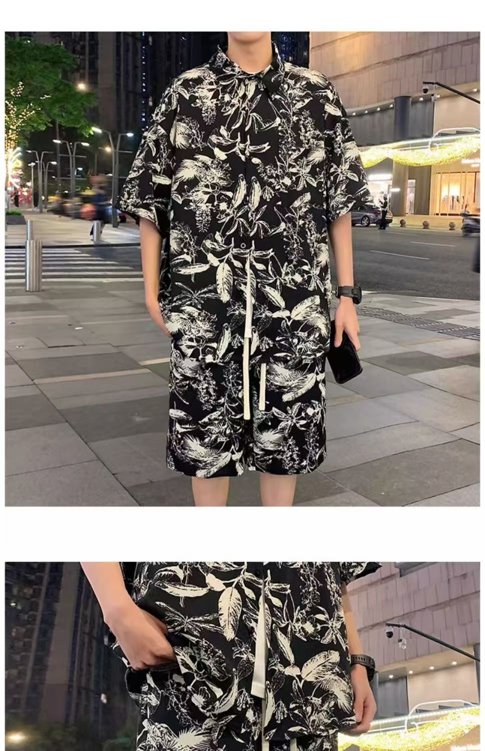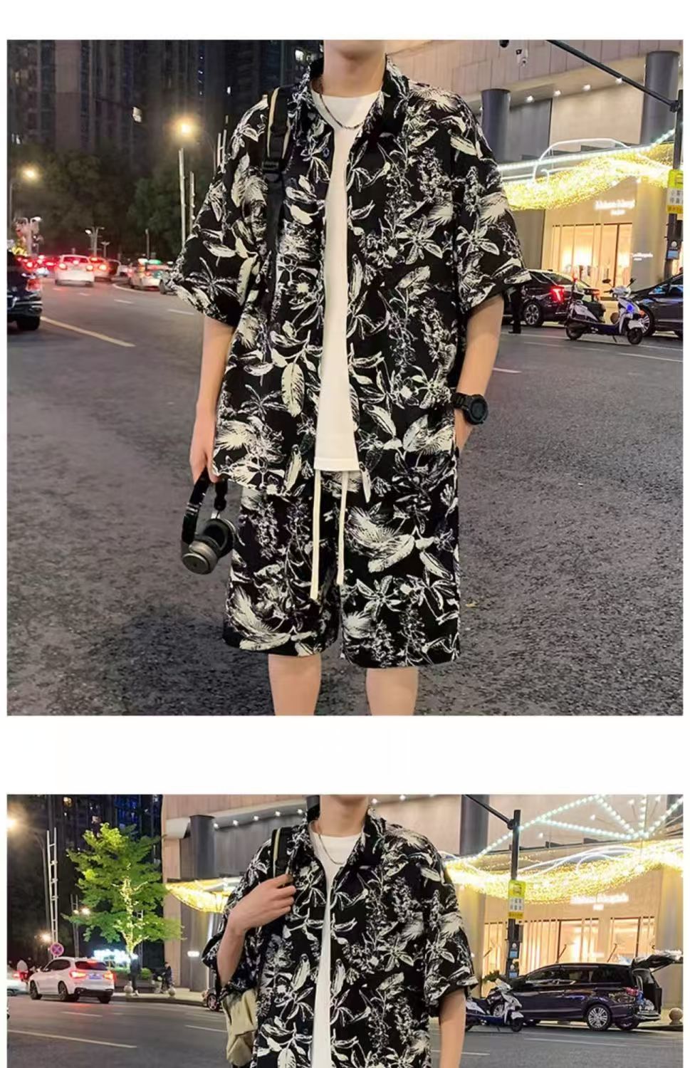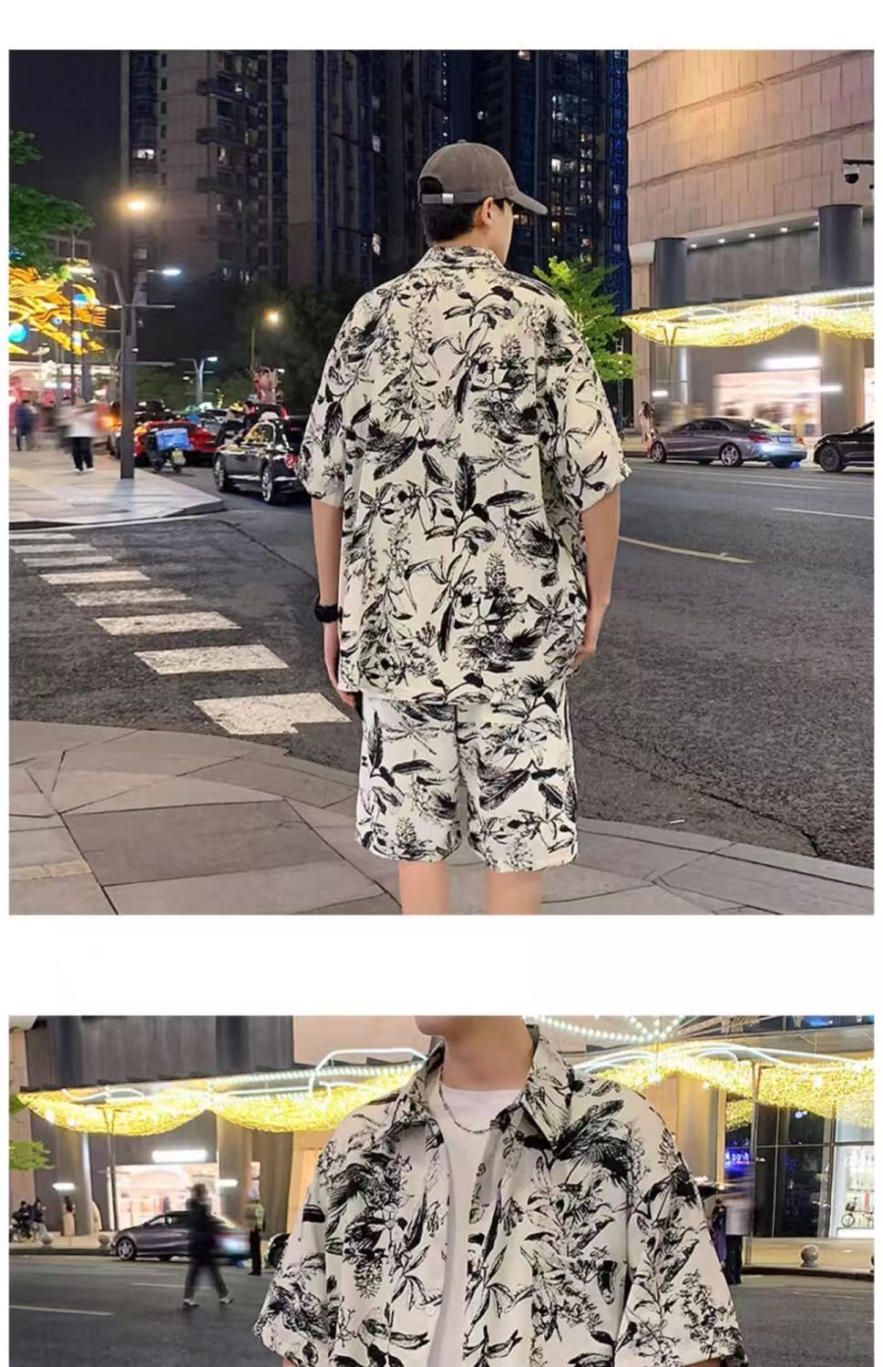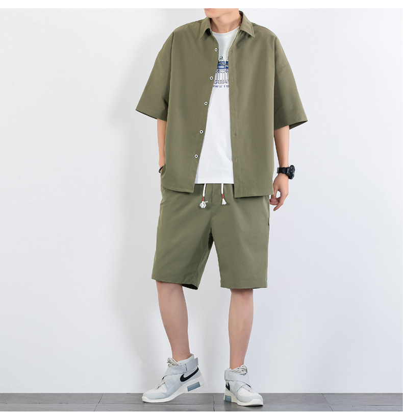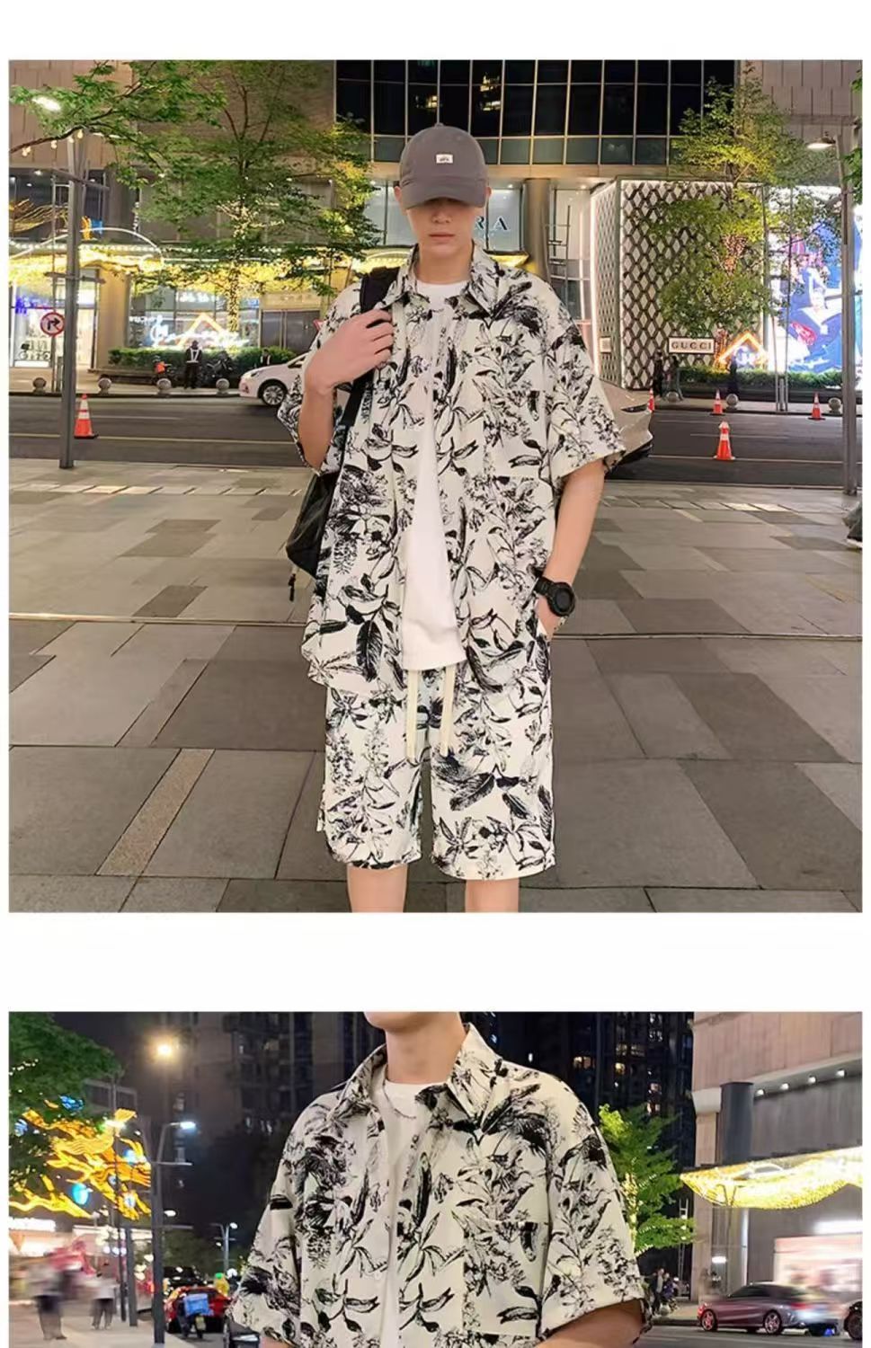 크로스 보더 남성 캐주얼 정장 여름 얇은 패션 의류 매칭 트렌드 한국 패션 반바지 반팔 세트스토어 가기