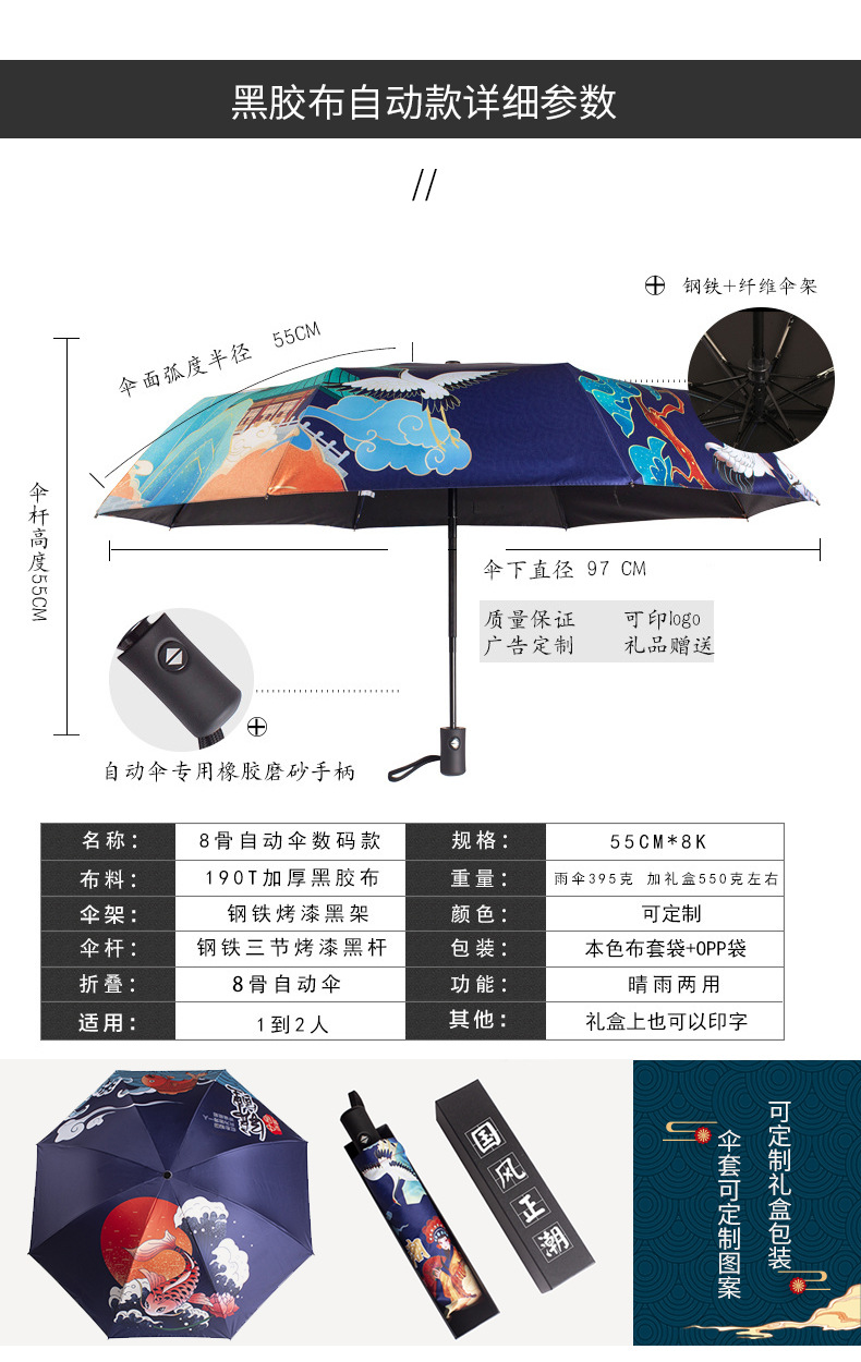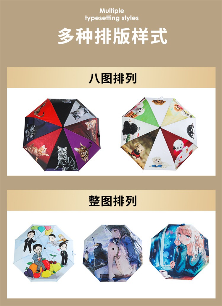 디지털 인쇄 우산 주변 애니메이션 일러스트레이션 문화 및 창의적 우산 디지털 인쇄 전체 패턴 광고 우산 자외선 차단 선물 우산