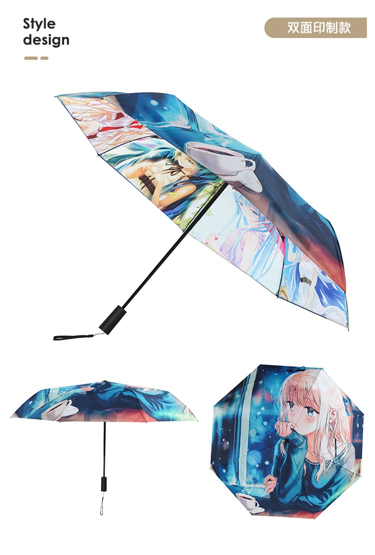 디지털 인쇄 우산 주변 애니메이션 일러스트레이션 문화 및 창의적 우산 디지털 인쇄 전체 패턴 광고 우산 자외선 차단 선물 우산스토어 가기