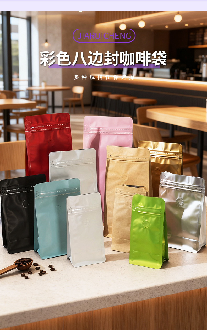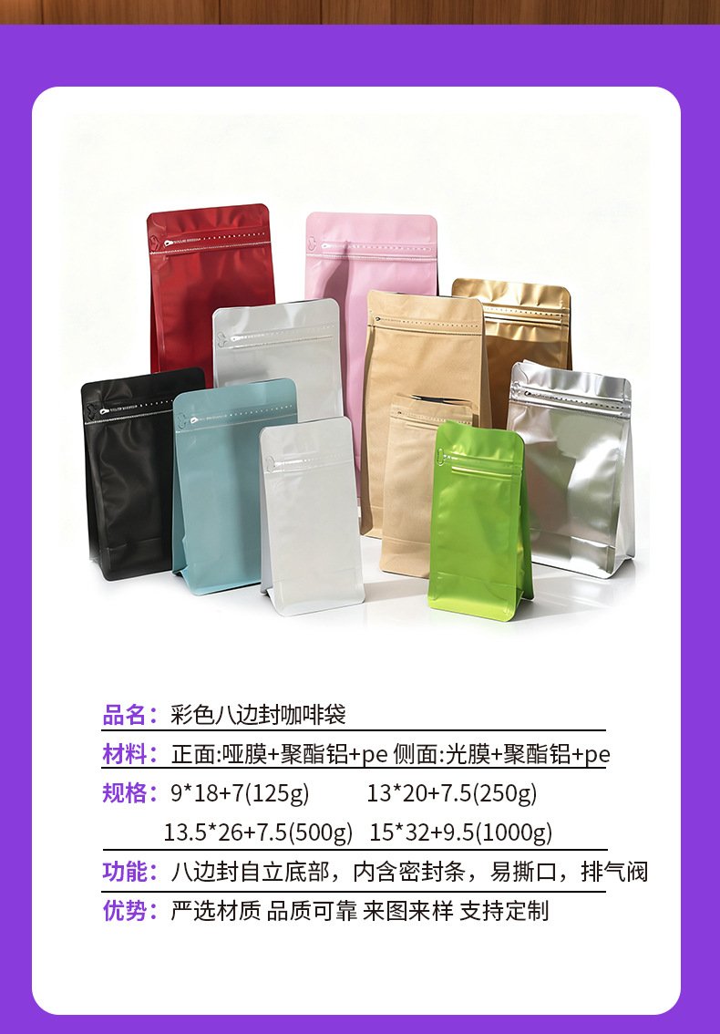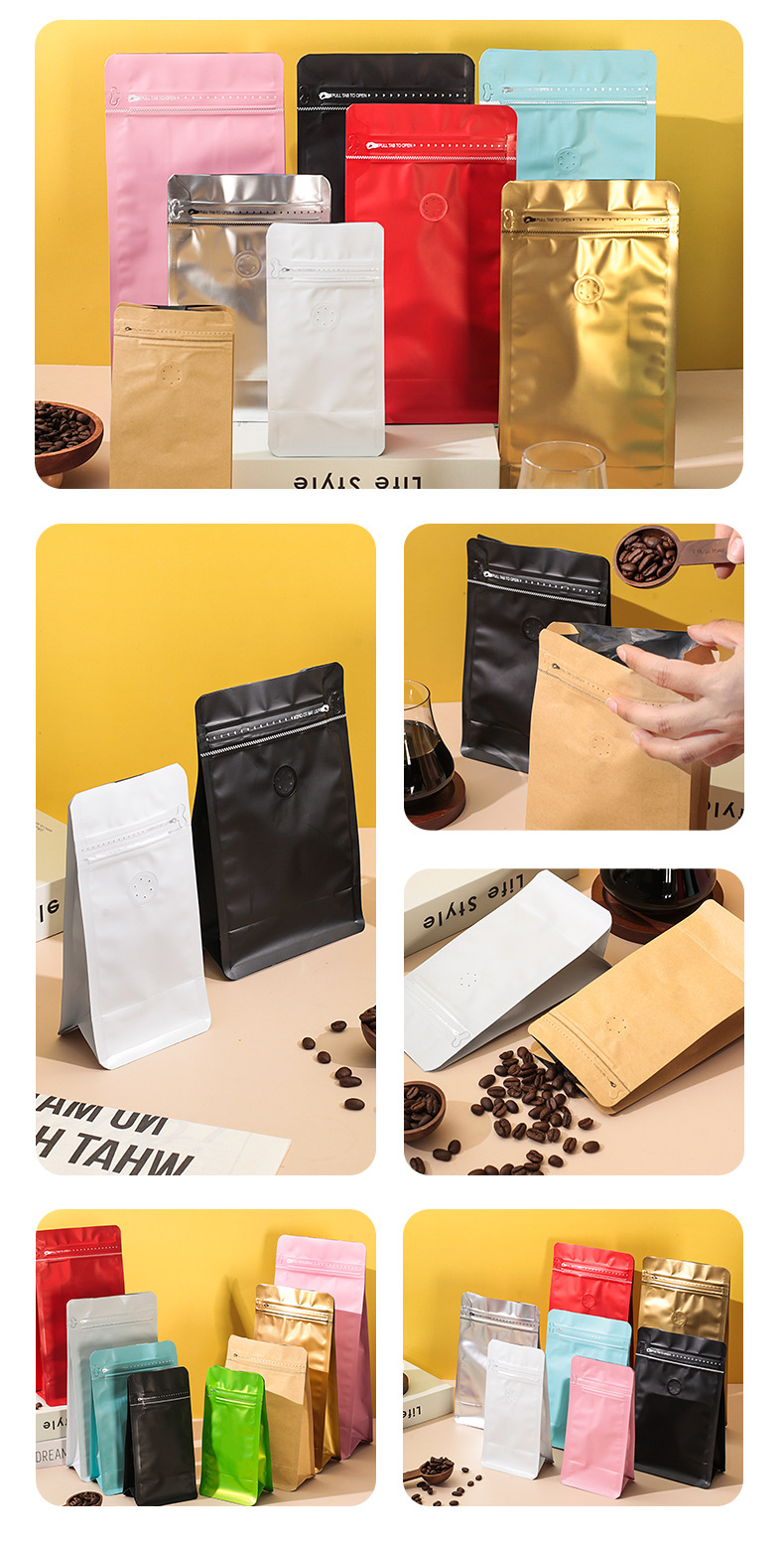 밸브가 있는 커피 원두용 스탠드업 파우치, 쉽게 찢을 수 있는 측면 지퍼, 8면 밀봉, 차, 고양이 및 강아지 사료, 식품 밀봉 포장 백
