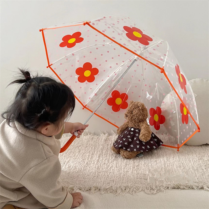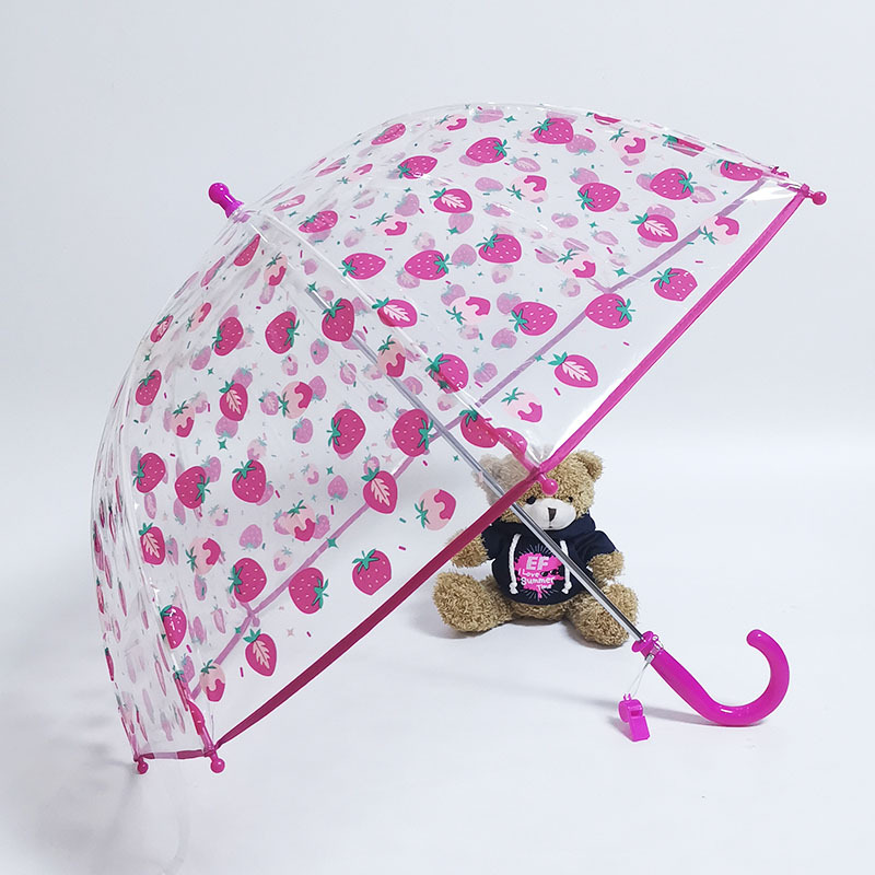 어린이 투명 우산 소년과 소녀 아기 유치원 학생 어린이 작은 딸기 초경량 만화 우산