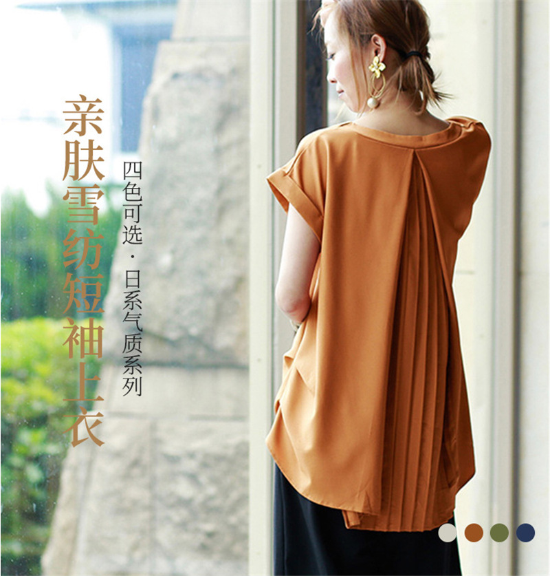2025 르오텐 인기상품 일본풍 여성 상의 반팔 쉬폰 셔츠 피부 친화적인 셔츠 통기성 좋은 캐주얼 셔츠