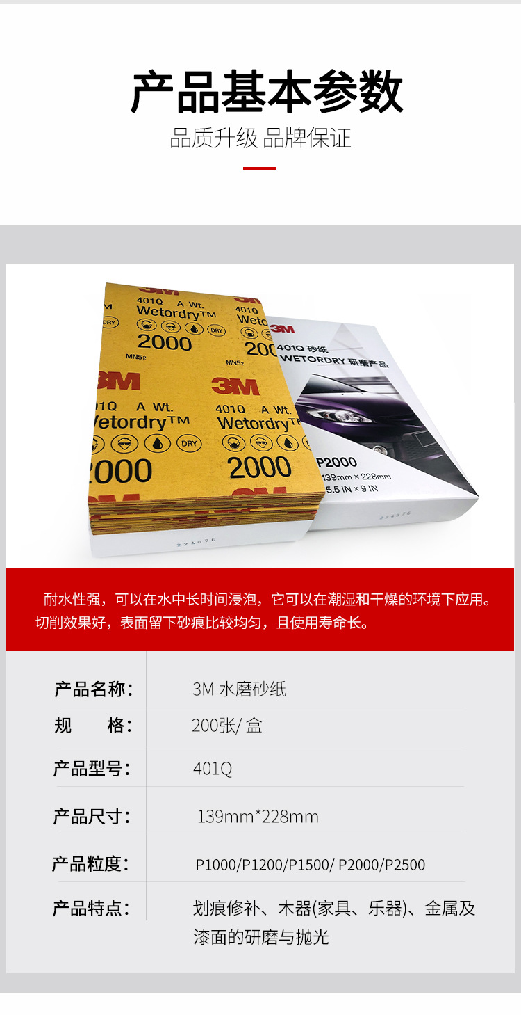 3M401Q 자동차 가구 페인트 아름다움 미세 연마 1500 2500 메쉬 물 사포 스크래치 연마스토어 가기