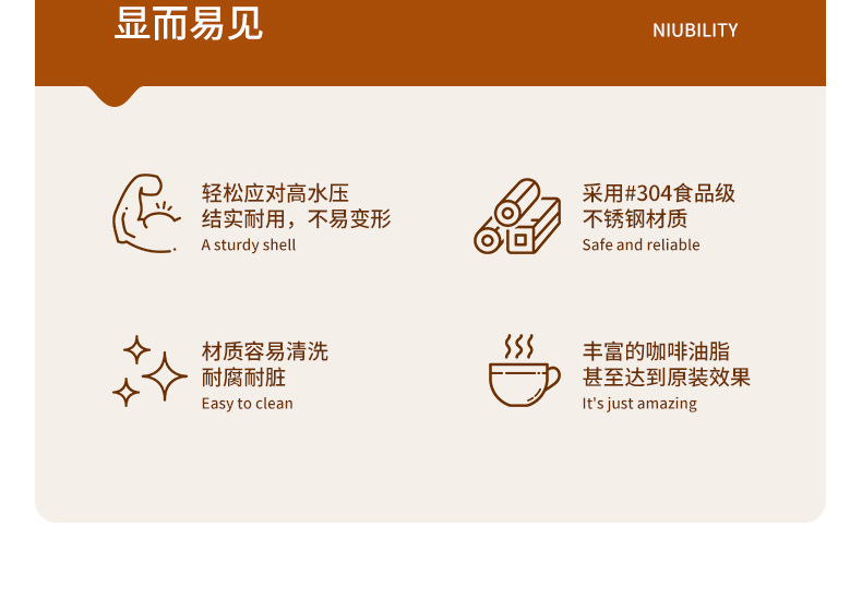 而且底部设计均匀进水口,可最大程度萃取咖啡油脂。