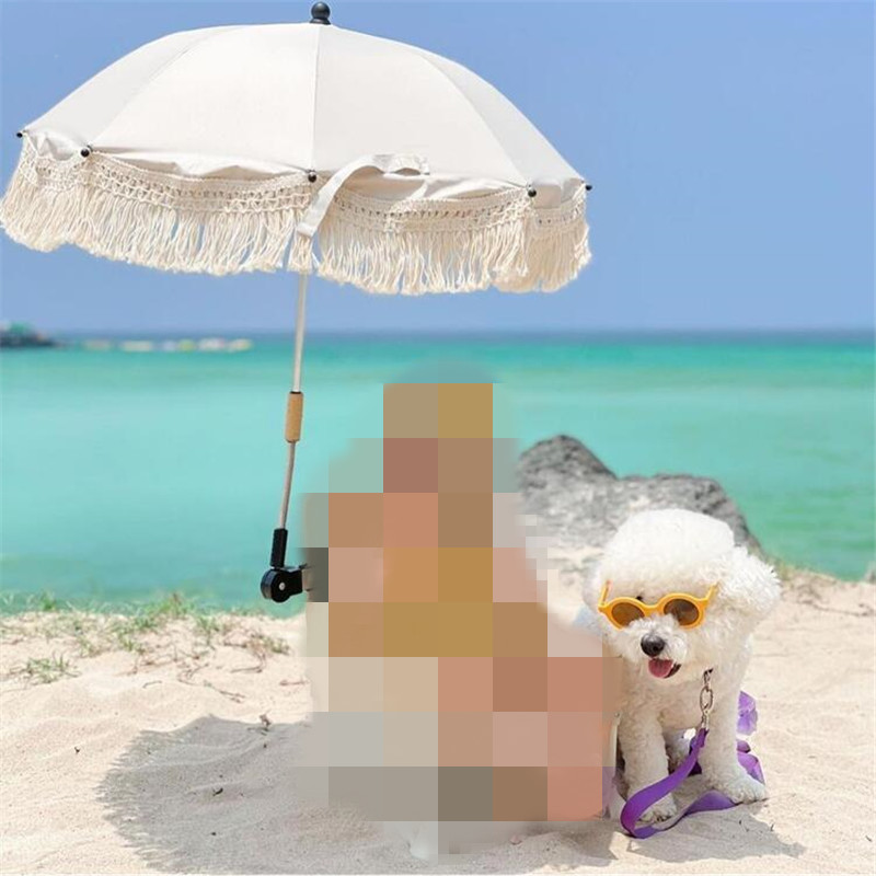 INS 한국 자수 곰 아이 야외 트롤리 차양 아기 해변 자외선 차단제 UV 우산