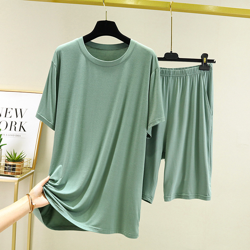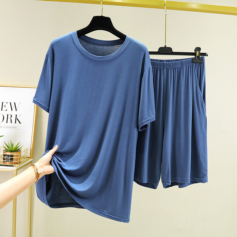 여름용 얇은 남성용 잠옷, 외출복으로도 착용 가능, 모달 반팔 홈웨어 세트, 큰 사이즈 스포츠 반바지, 잠옷, 심플한 디자인